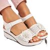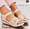Большие размеры босоножки на танкетке женские летние 2025 года независимые станции новые полые цветы толстая подошва сандалии с пряжкой из одного слова на липучке