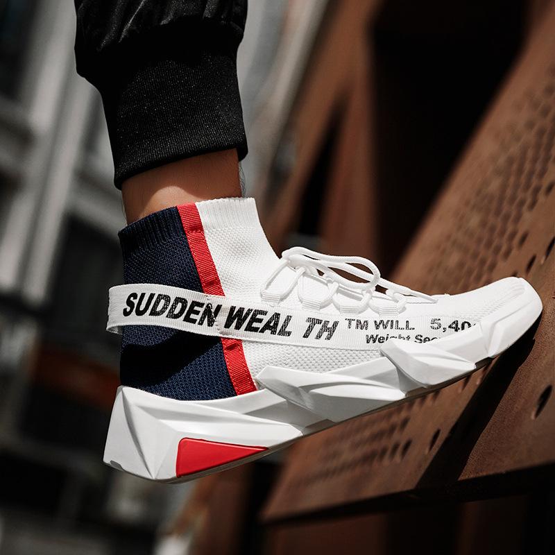 Большие размеры высокие кроссовки-мушки мужские трендовые носки обувь модная мужская обувь летний тренд — купить товар онлайн с бесплатной доставкой по всему миру!