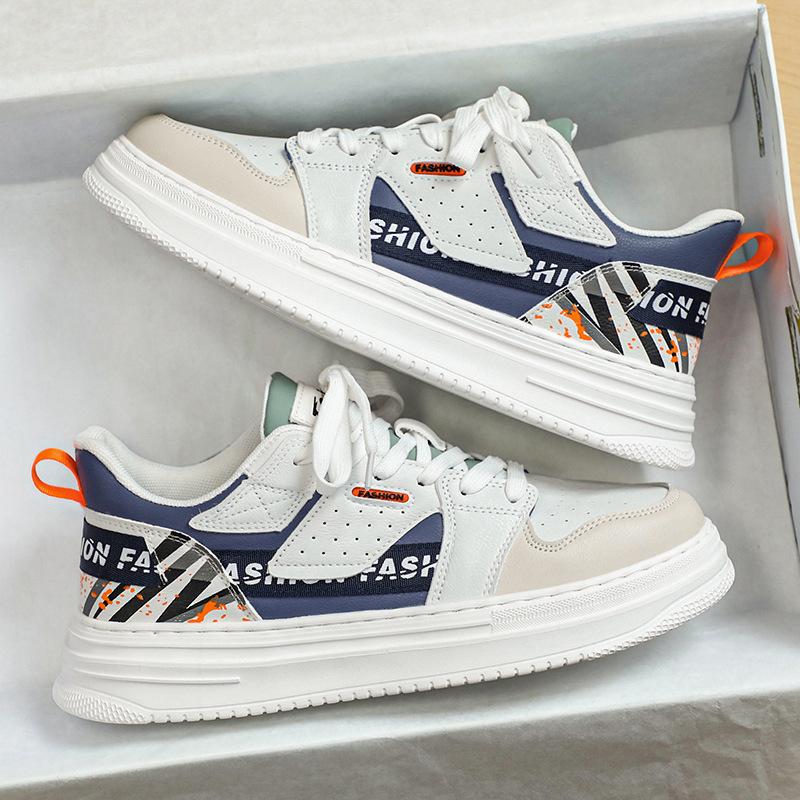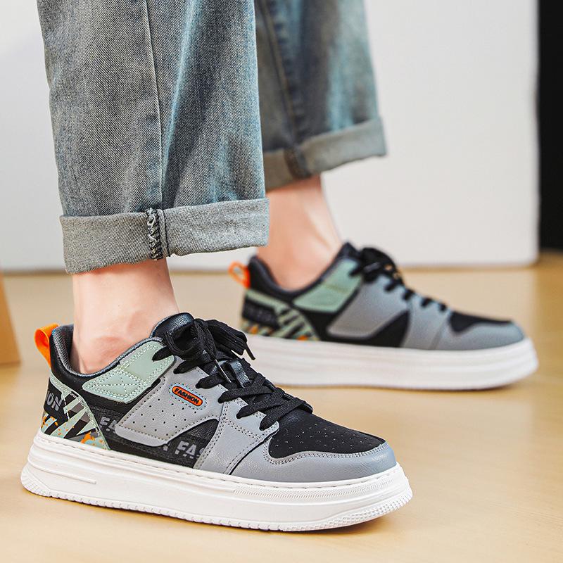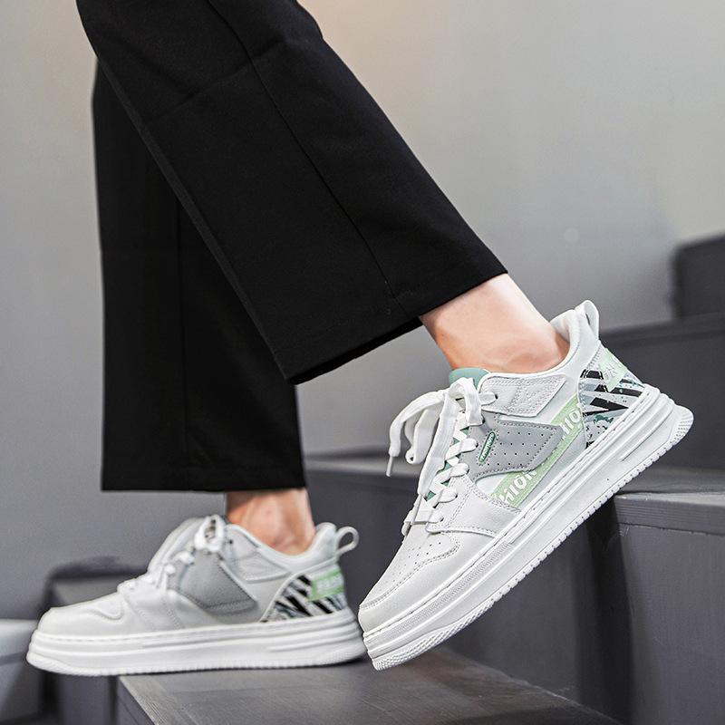 Мужская обувь весна и осень кожаная перфорированная дышащая маленькие белые туфли 2024 новая толстая подошва увеличивающая рост сетчатая подкладка спортивные кеды