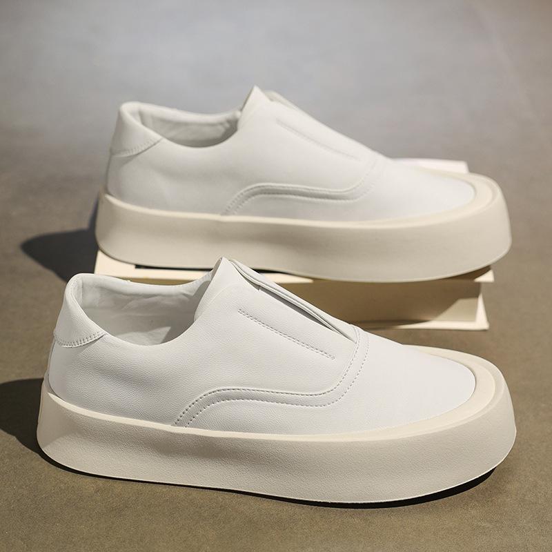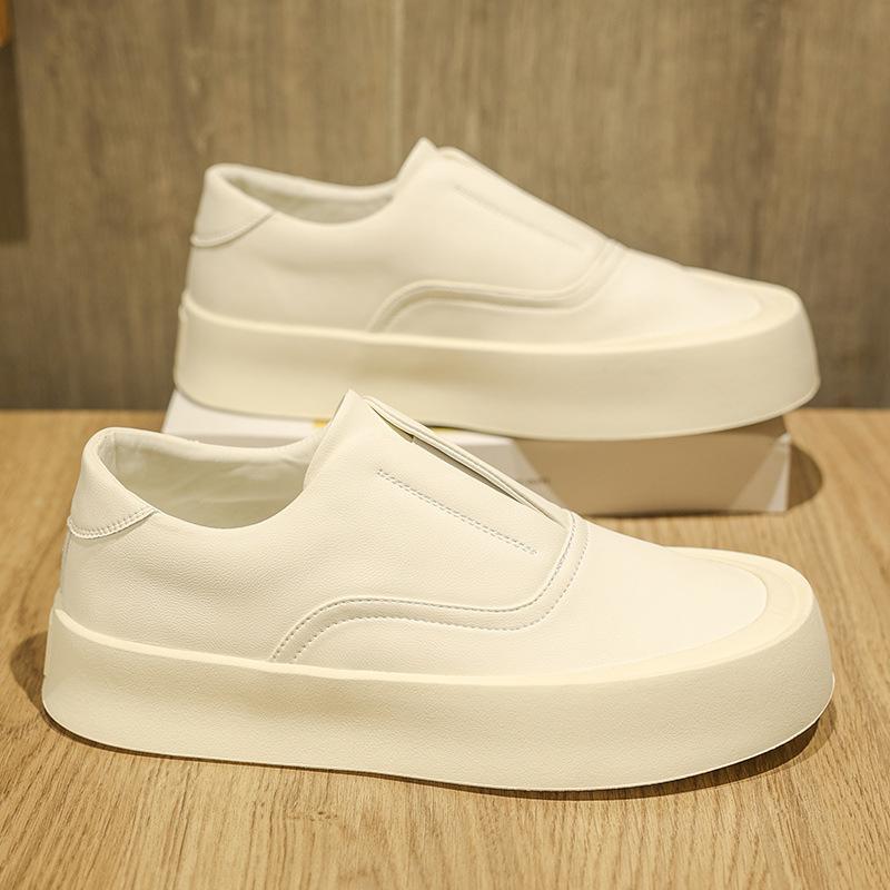 Осень новые кожаные туфли-лоферы на одной педали, повседневные, универсальные, с круглым носком, на толстой подошве, увеличивающие рост, холодные липкие мужские кеды, мужская обувь