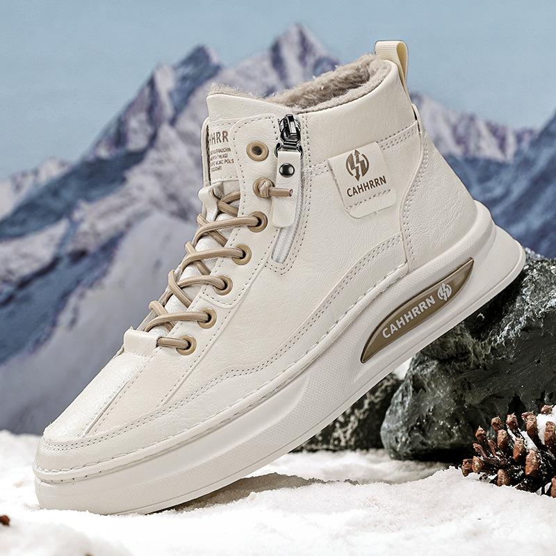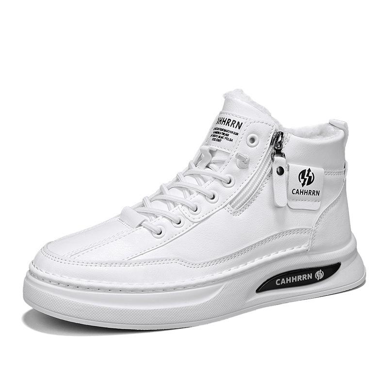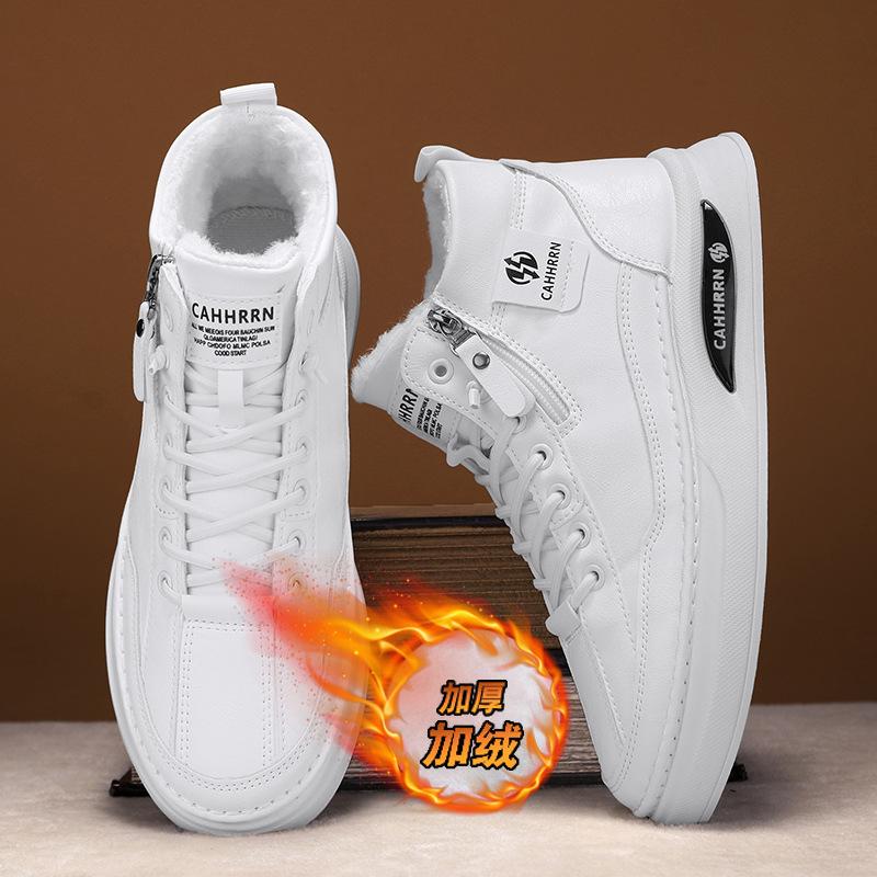 Осень и зима новая бархатная утолщенная теплая обувь на плоской подошве повседневная универсальная кожаная поверхность без шнуровки с закрытым верхом спортивная мужская обувь