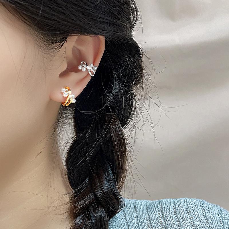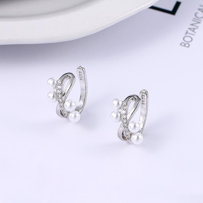 Французский крест жемчужные серьги-клипсы без пирсинга ушей темпераментный жемчуг вспышка бриллиант поддельные серьги-гвоздики женские ранняя осенняя волна