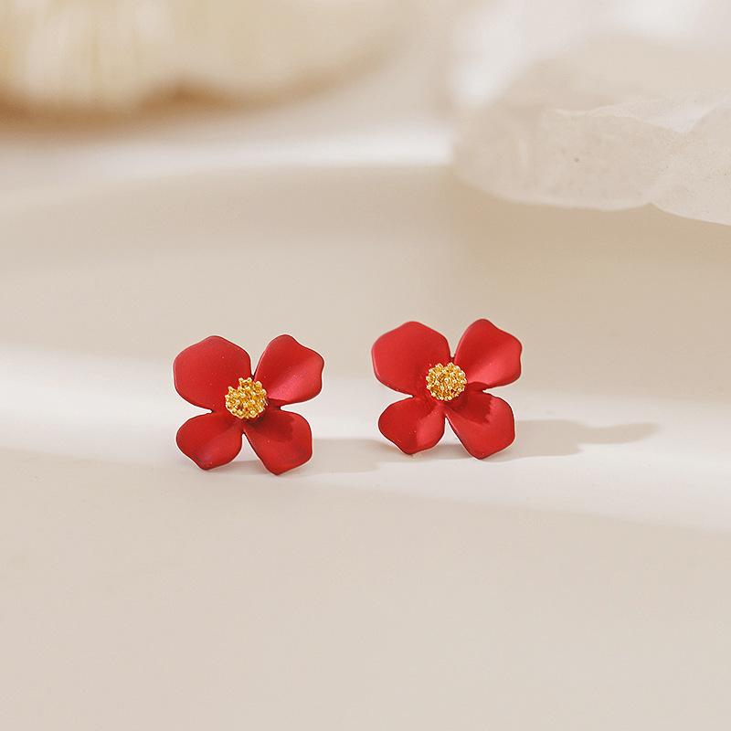Красные лепестки темперамент милые маленькие цветочные серьги-гвоздики женские