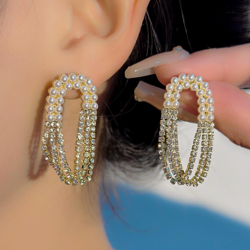 Простые серьги-гвоздики с бриллиантами и овальным жемчугом, легкие, роскошные, темпераментные, универсальные, высококлассного дизайна