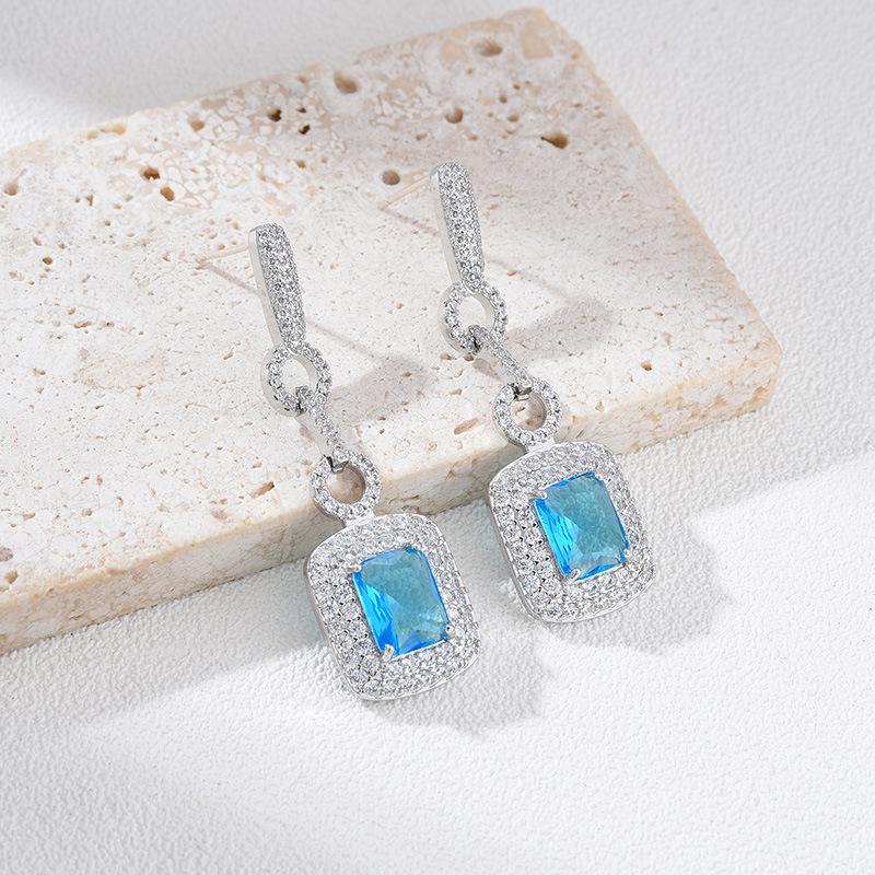 Изысканные серьги из искусственного цветного драгоценного циркона, креативный дизайн, переплетенные квадратные серьги, серьги