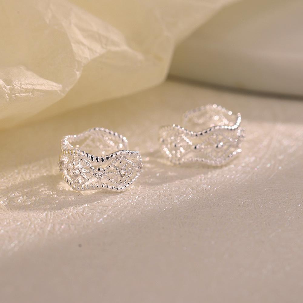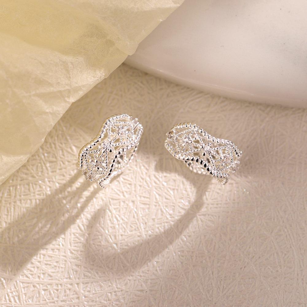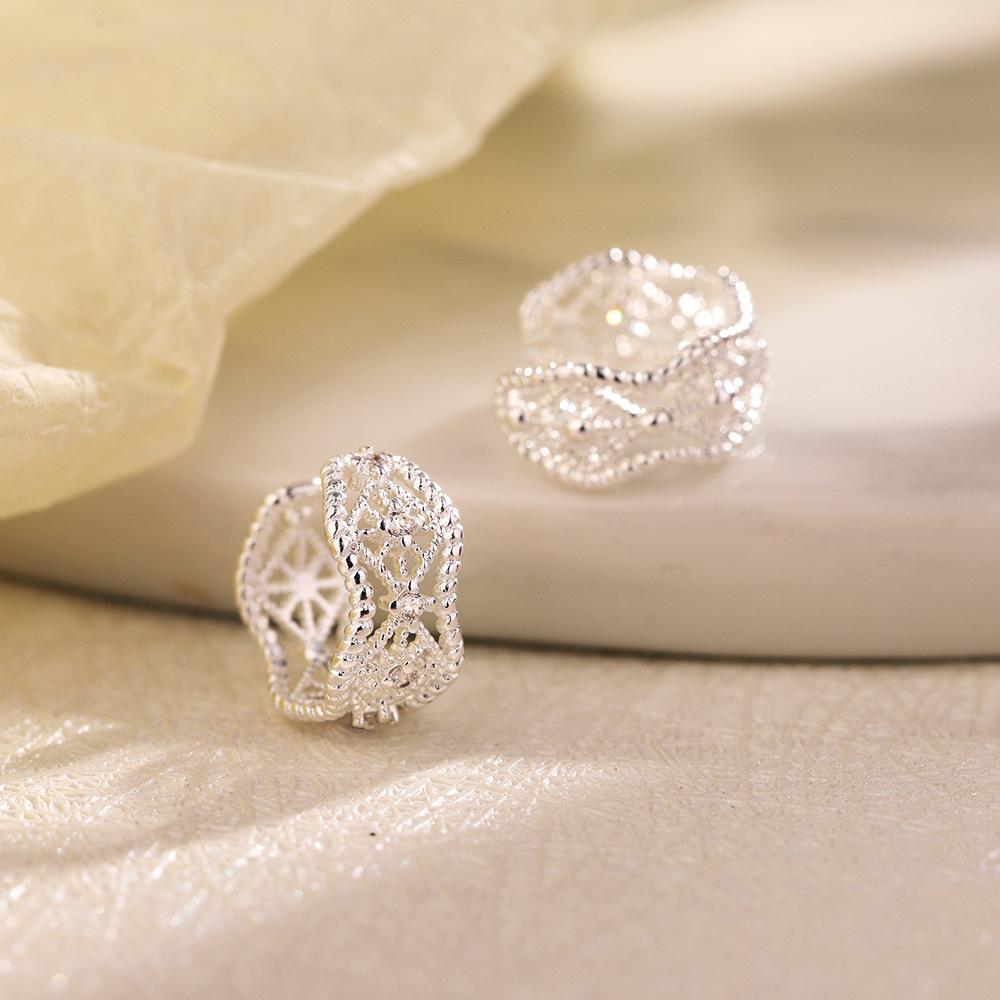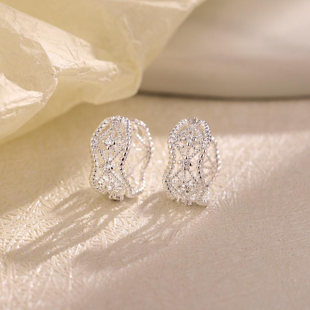 Клипсы для ушей с полым кружевом без пирсинга ушей, ретро-тренд, нерегулярная волна, сетчатые циркониевые клипсы для ушей, женские