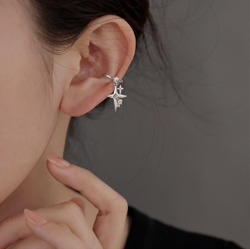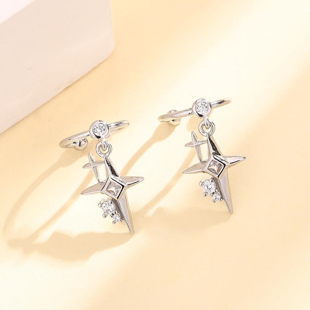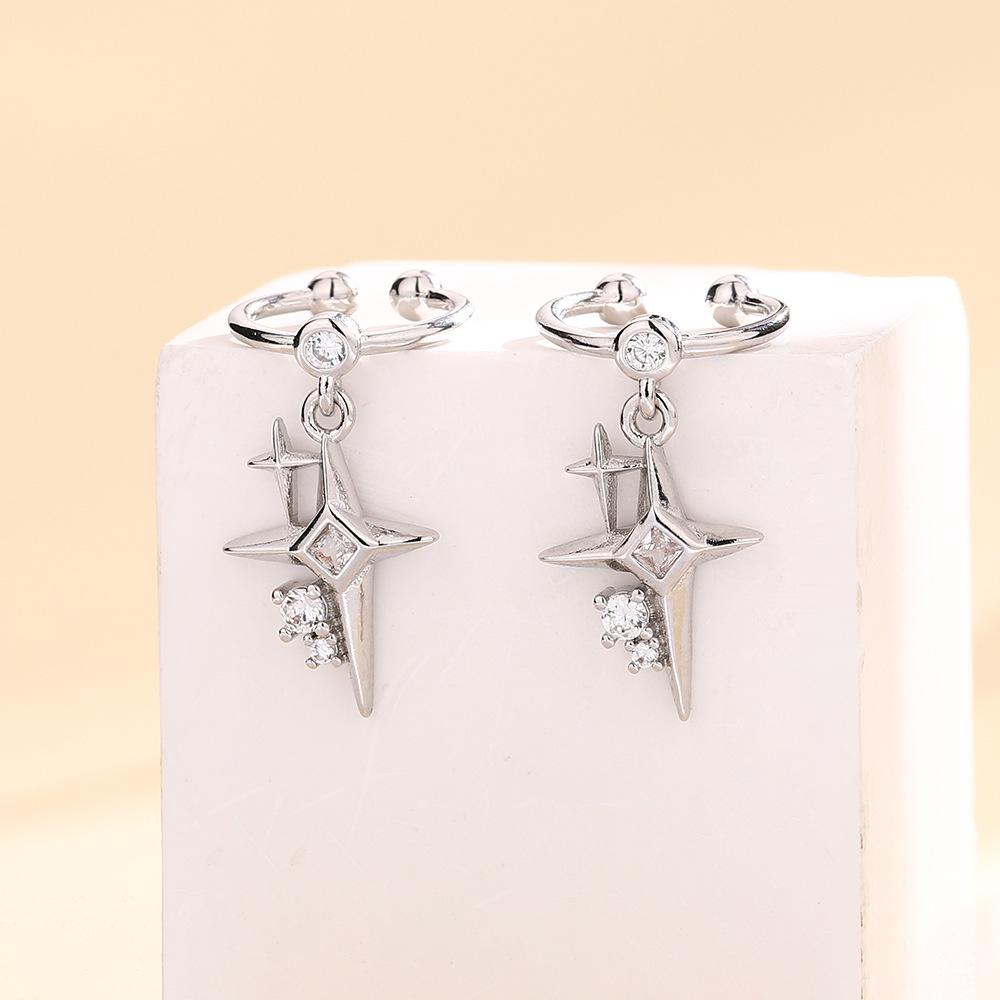Вспышка Алмаз Квадратная Четырехместная Звезда Серьги Клипса Без Пирсинга Ушей Женская Холодный Ветер Крест Звезда Тренд Крест Ухо Косточка Клипса Мужская