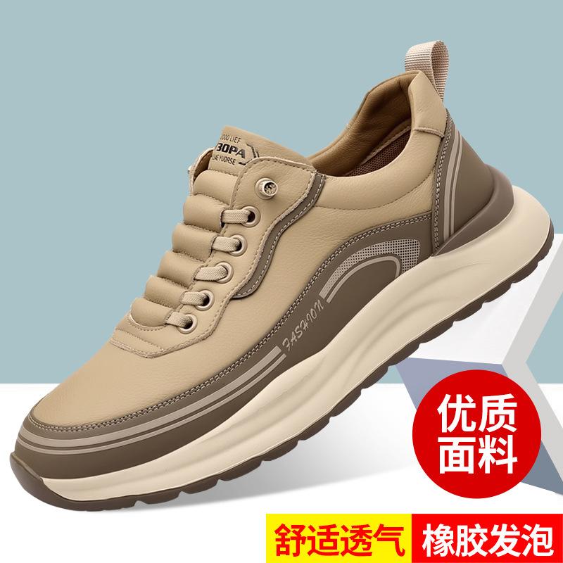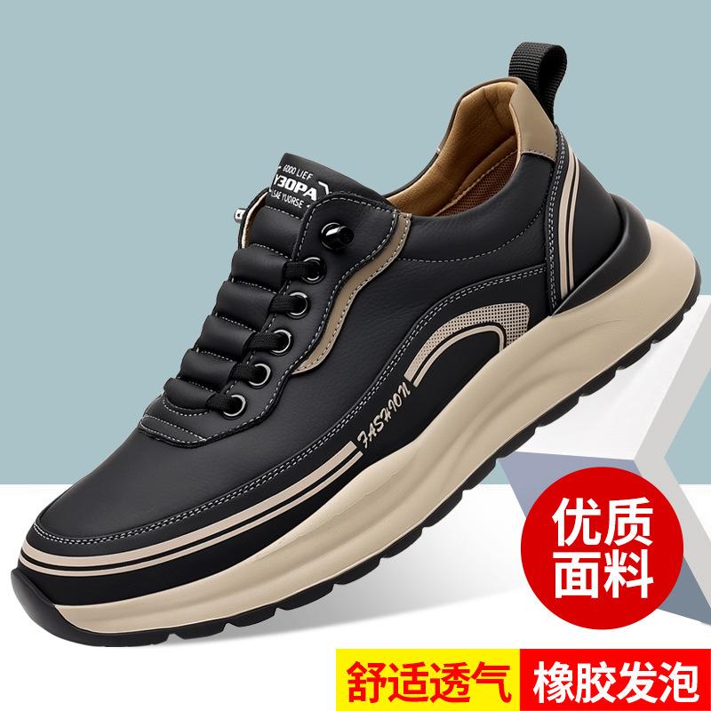 Мужская обувь, весна, новые, с одной педалью, на толстой подошве, мужские кожаные туфли для активного отдыха, универсальные, легкие, амортизирующие, с мягкой подошвой, для спорта и отдыха