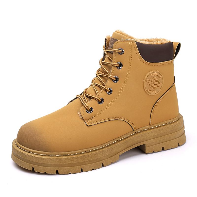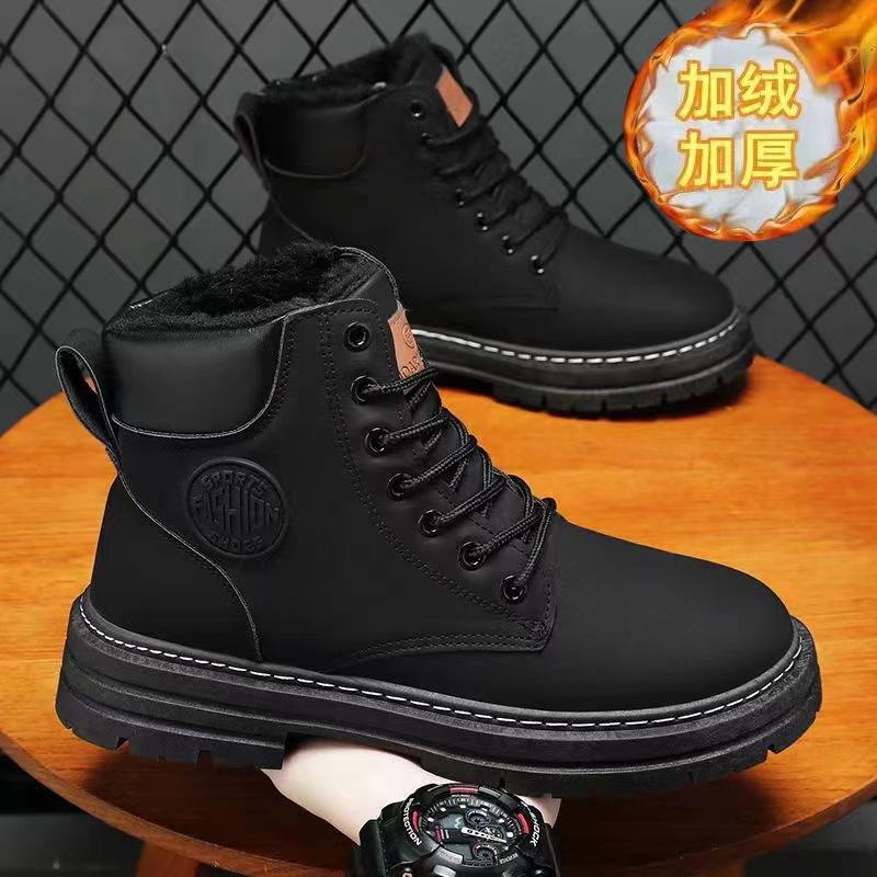 Мужские ботинки мартин, высокие, бархатные, теплые, зимние, в стиле рабочей обуви, короткие ботинки в британском стиле, корейская версия, водонепроницаемые ботинки, мужская трендовая обувь