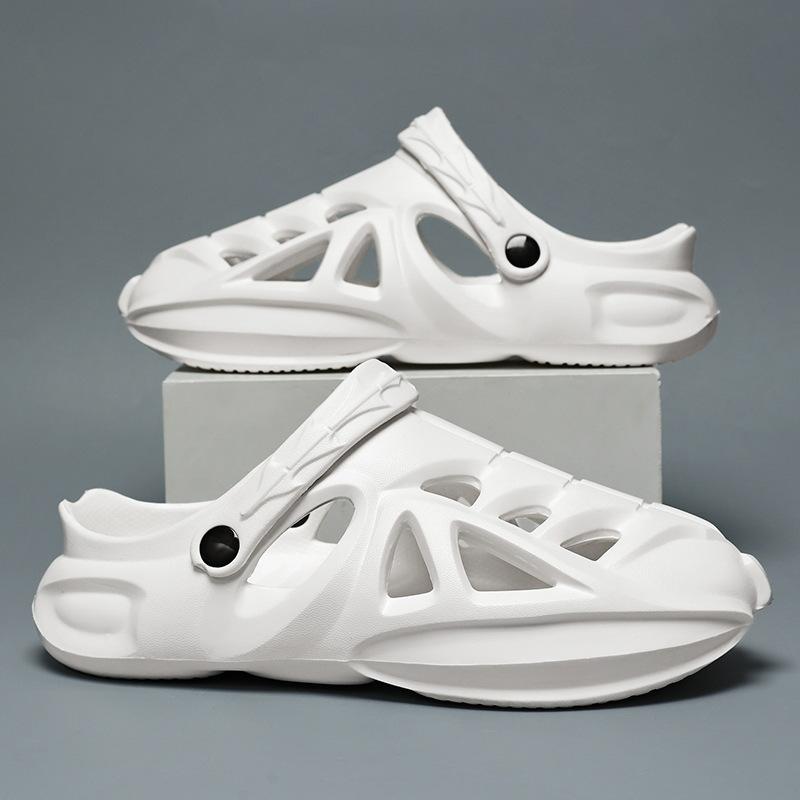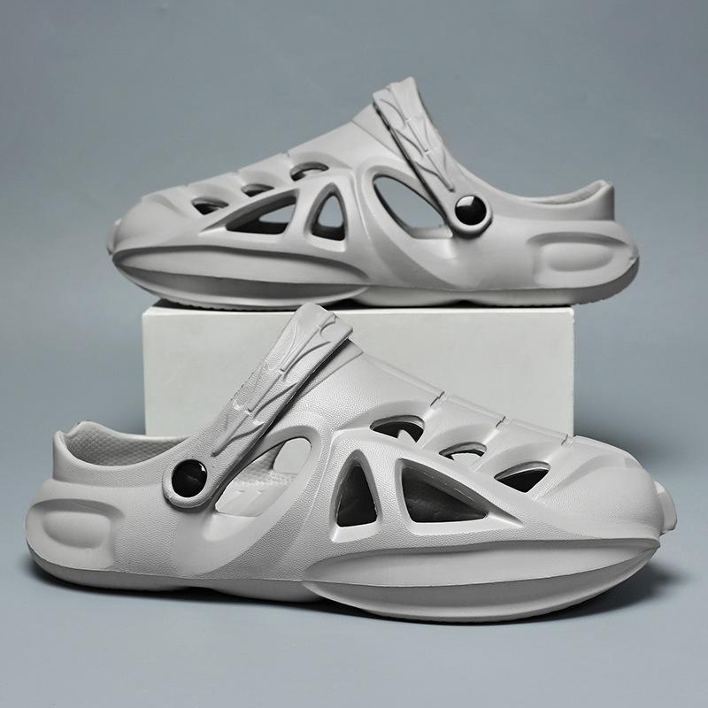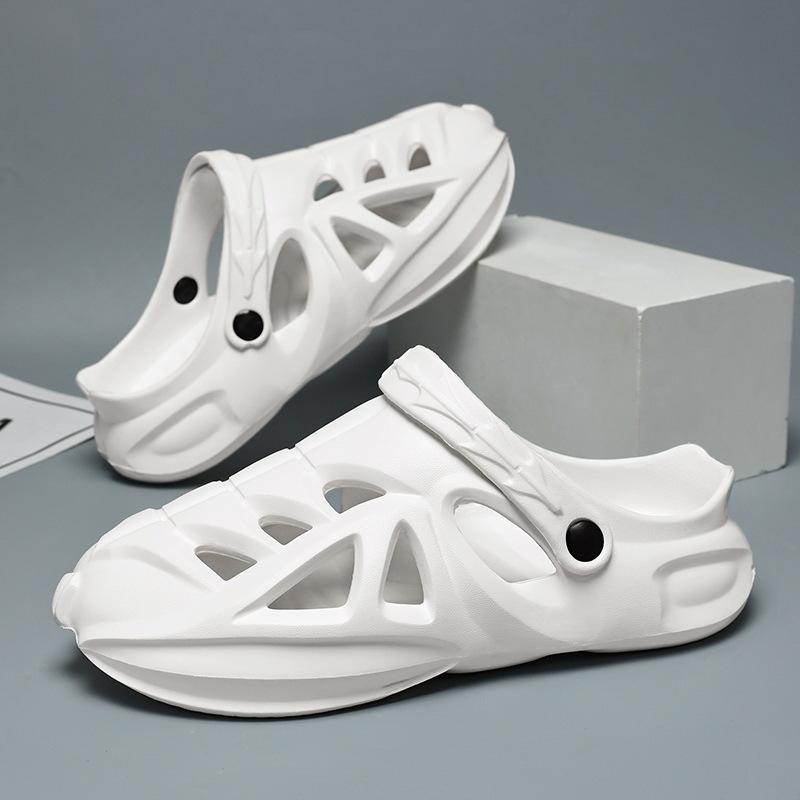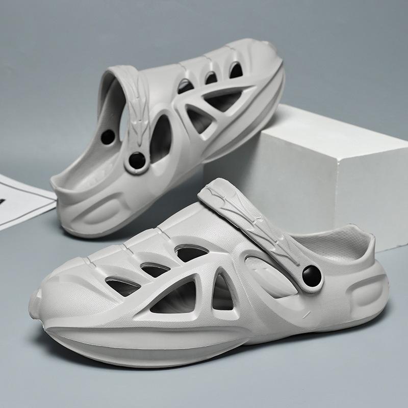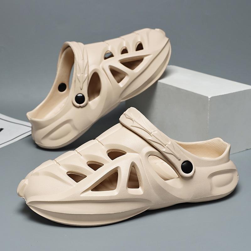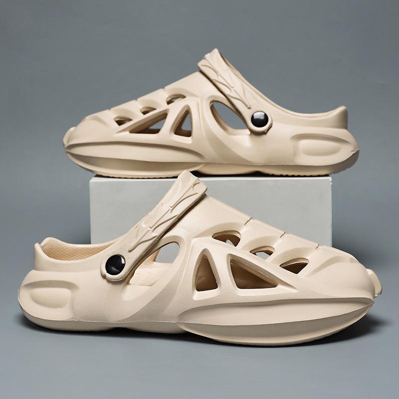 Мужские летние уличные дышащие сандалии с перфорацией, персонализированные пляжные туфли, мягкая подошва, нескользящие, износостойкие, двойного назначения, с закрытым носком, крутые шлепанцы