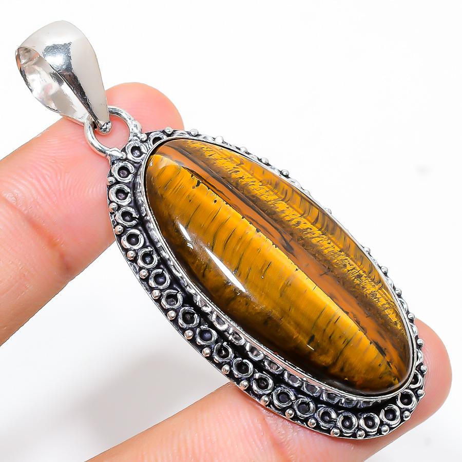 Подвеска ручной работы из стерлингового серебра 925 пробы с натуральным драгоценным камнем тигрового глаза длиной 2,48 дюйма