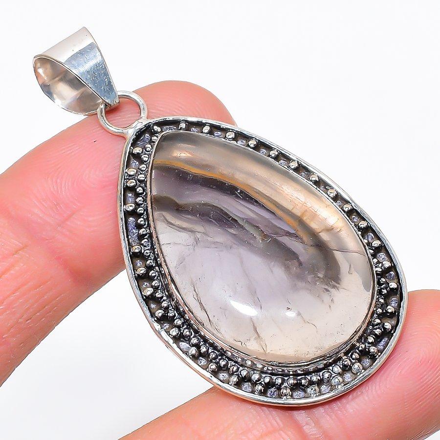 Натуральный Флюорит Драгоценный Камень 925 Стерлинговое Серебро Ювелирный Кулон 2,32"