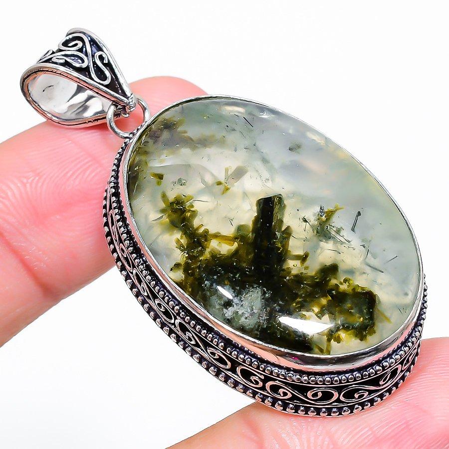 Подвеска ручной работы из стерлингового серебра 925 пробы с натуральным драгоценным камнем пренитом 2,17 дюйма