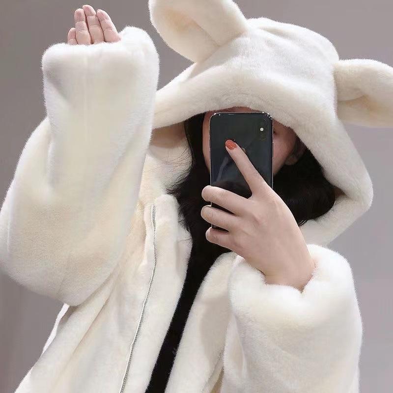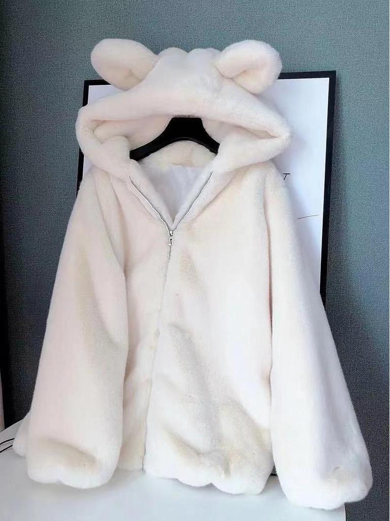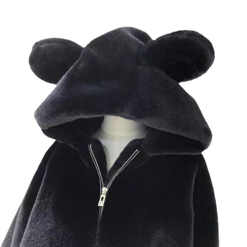 Погрузитесь в уютное тепло с этим плюшевым пальто средней длины, созданным для женщин, которые ценят стиль и комфорт.. Благодаря свободному крою это пальто идеально подходит для многослойной одежды, а длинные рукава сохранят тепло в прохладную погоду.. Капюшон не только обеспечивает дополнительную защиту от холода, но и дополнен очаровательными медвежьими ушками для игривого вида.. Изготовленное из толстого флиса с подкладкой из мягкого флиса, это пальто обеспечивает роскошную теплоизоляцию.. Идеально подходит для зимних прогулок, гармонично сочетая в себе практичность и уникальный, причудливый шарм.