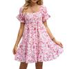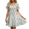 Женское летнее свободное платье с квадратным вырезом и эластичным шифоновым принтом с короткими рукавами и галстуком
