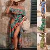 Богемное платье женское с открытыми плечами длинные платья в стиле бохо с рюшами в винтажном стиле с высокой талией летнее платье с цветочным принтом