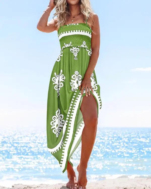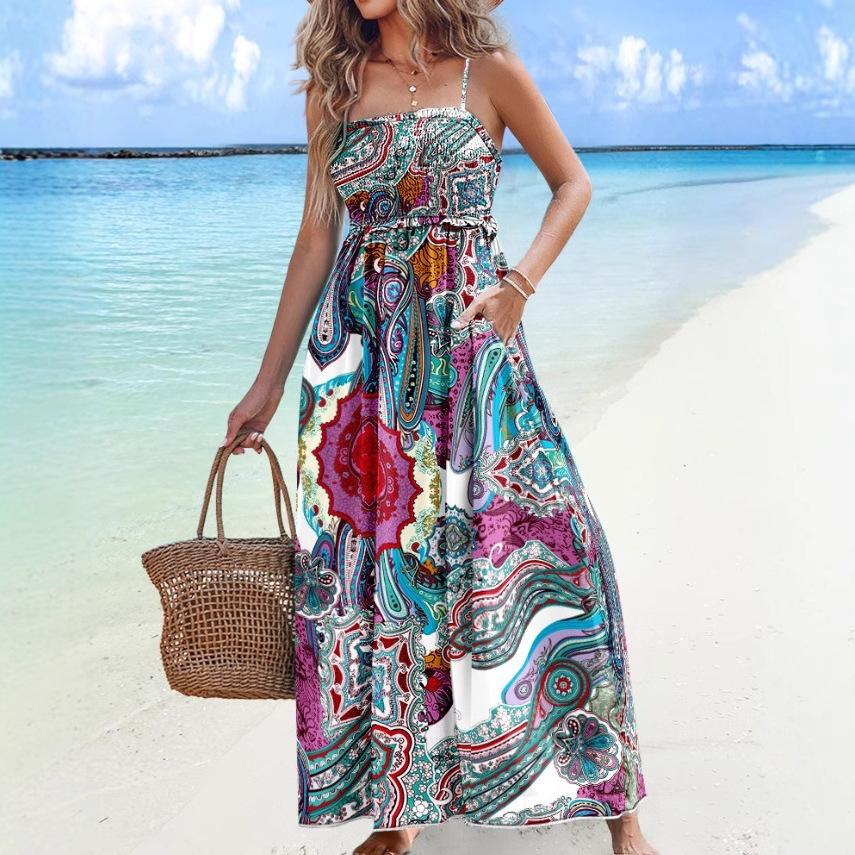 Женские платья модные летние бретельки с принтом в стиле бохо пляжные макси платья для женщин Сарафан халат Femme