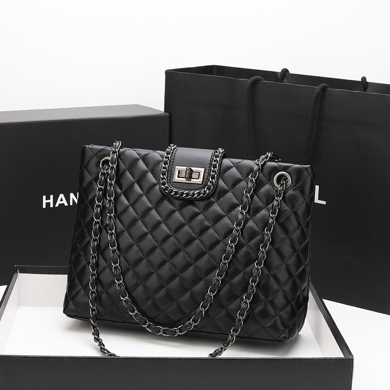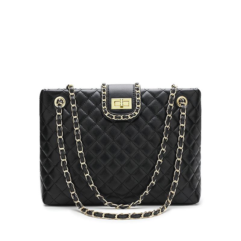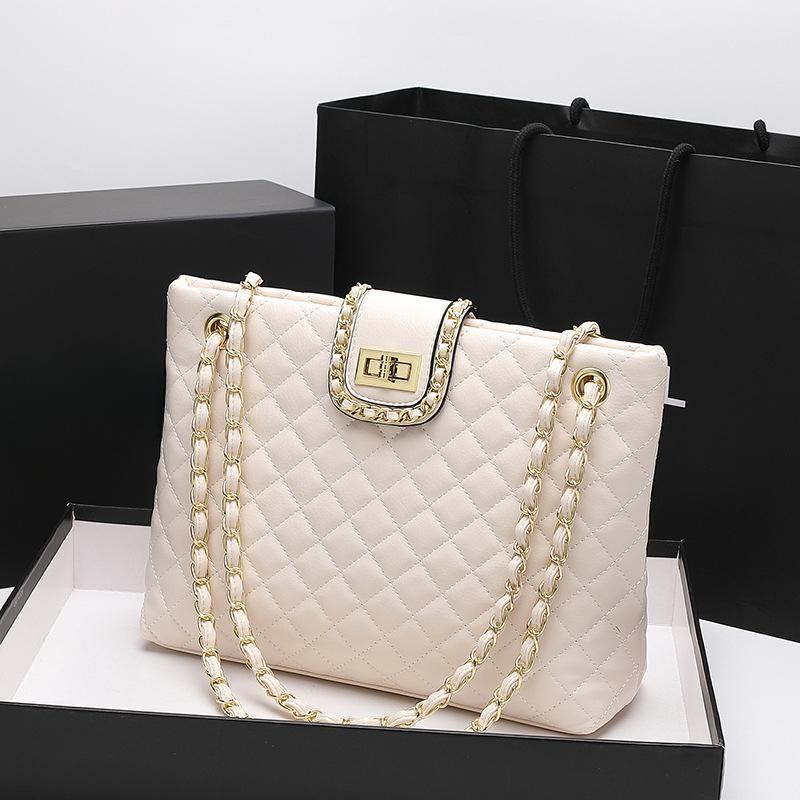 Весенняя сумка-тоут с цепочкой и ромбовидной решеткой, большая вместимость, сумка через плечо, сумка через подмышку, женская дорожная сумка