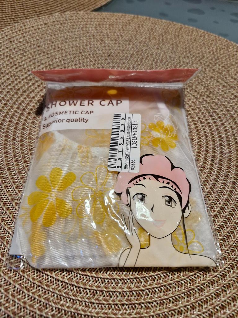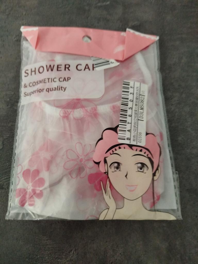 Шапочка для душа, прочная, спокойного цвета, не слишком яркая. Размер хороший, большой, буду ещё заказывать.