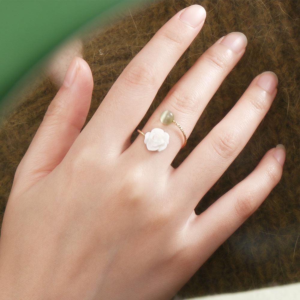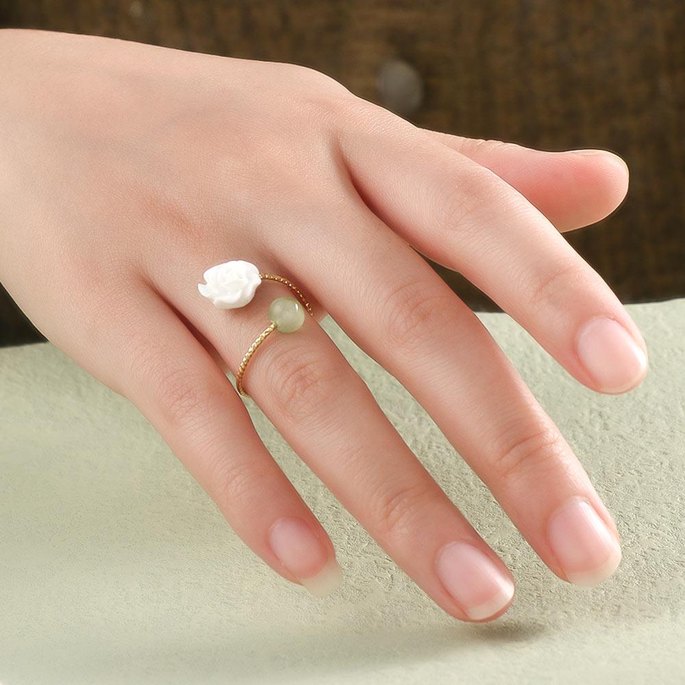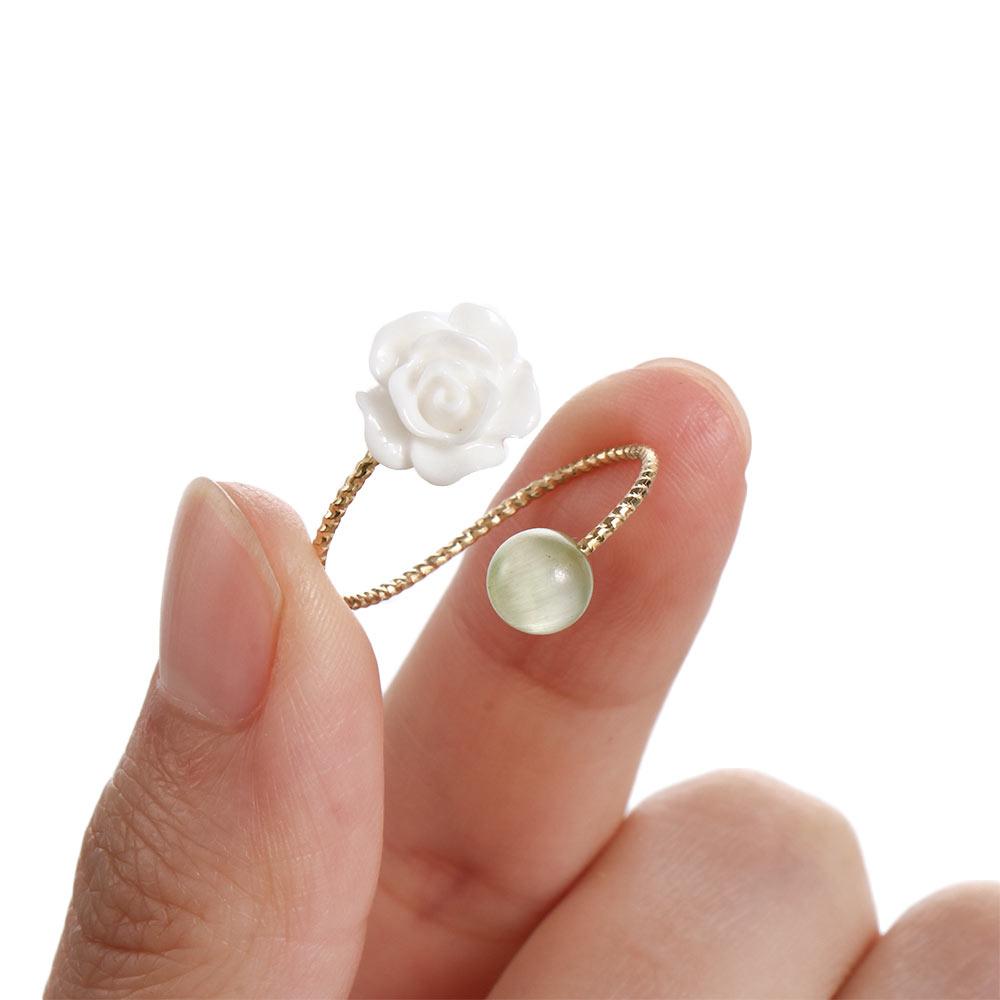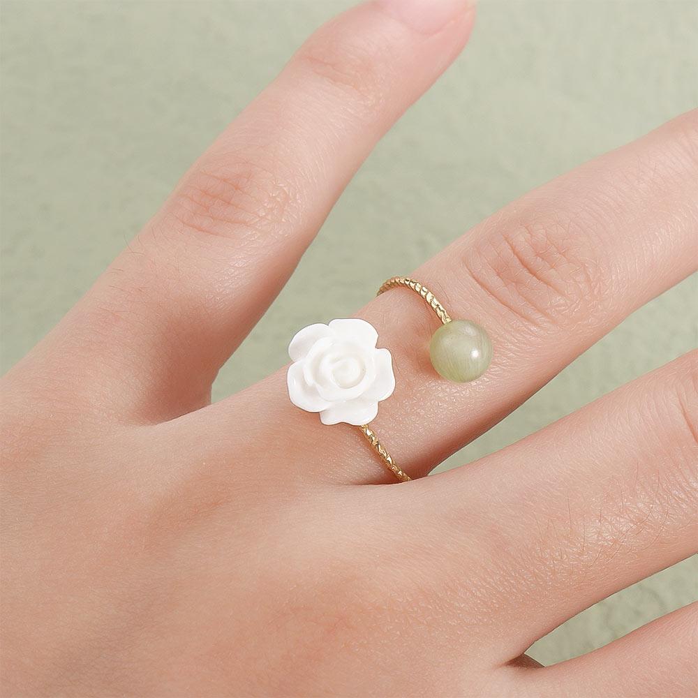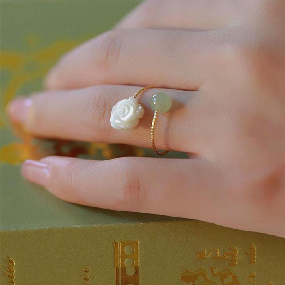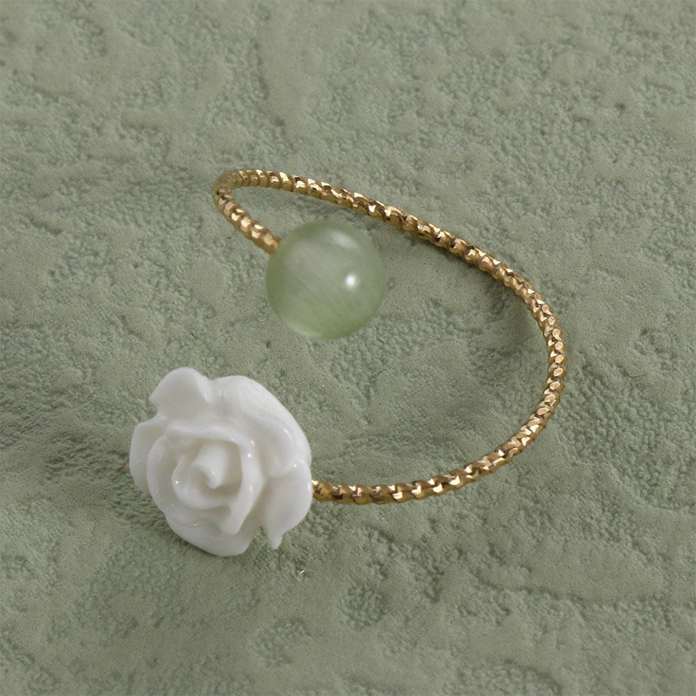 Золотое розовое цветочное зеленое геометрическое женское открытое кольцо в китайском стиле кольцо с бусинами кольцо