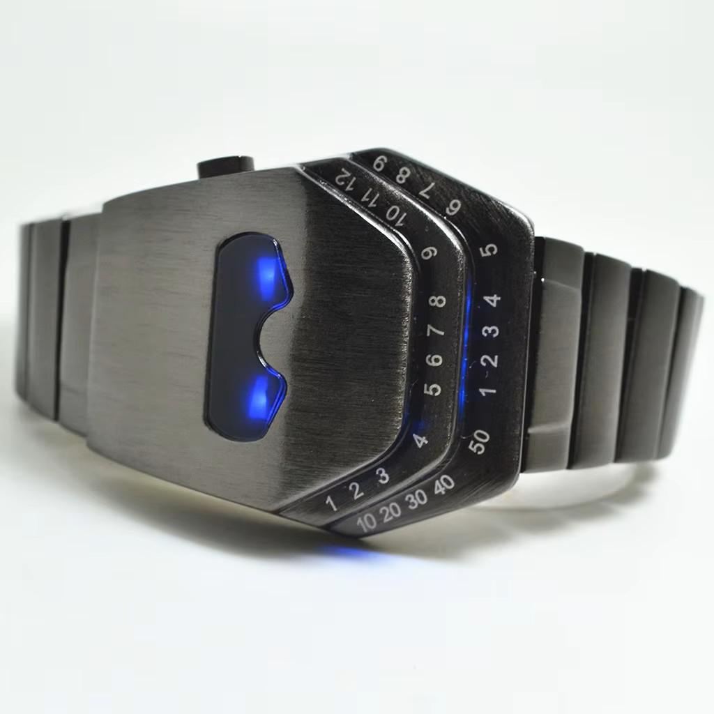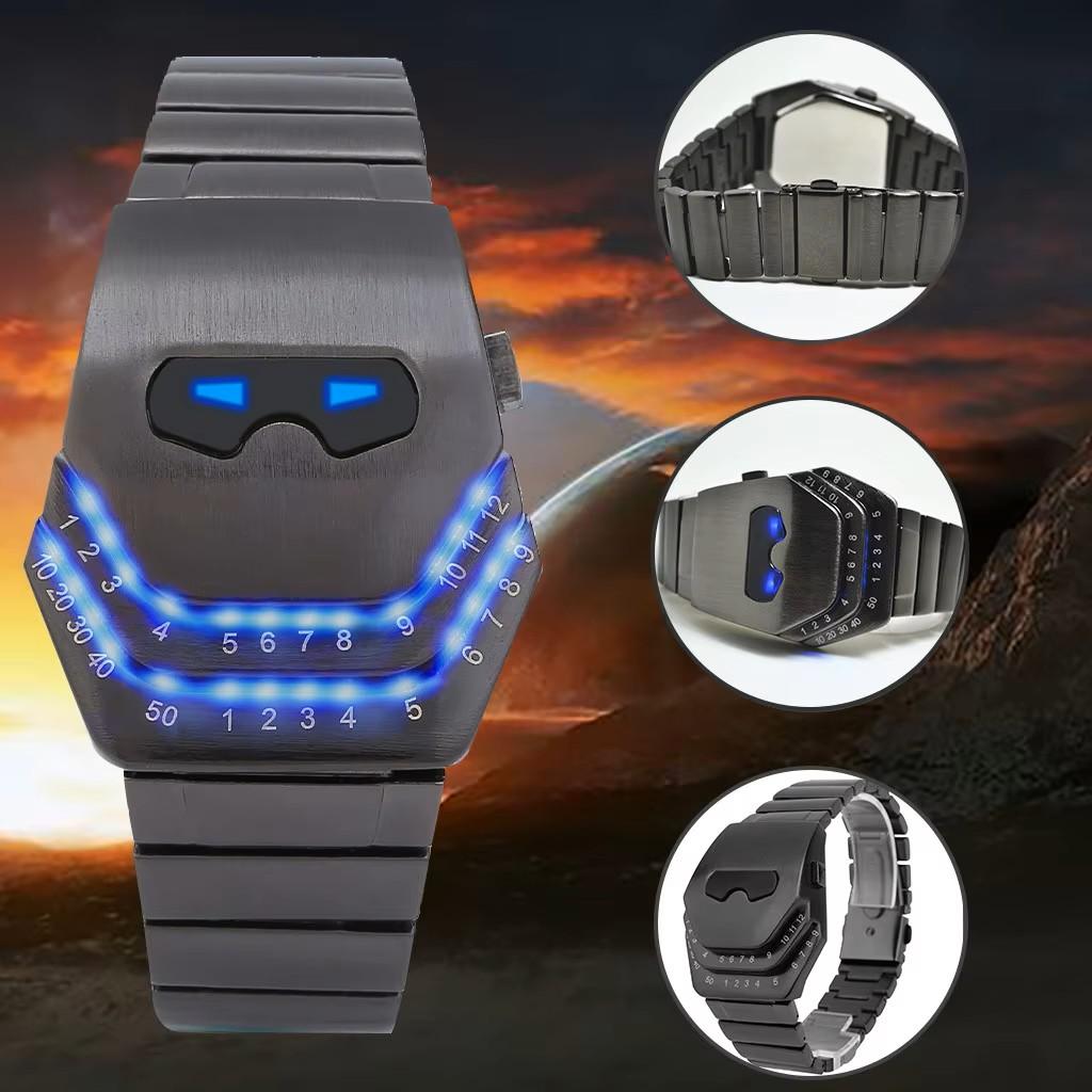 Часы Железного Человека Мужские Светодиодный Циферблат Черная Нержавеющая Сталь Электронные Наручные Часы Уличный Панк Рок Готика Винтаж Ретро Кварцевые Модные Спортивные Часы