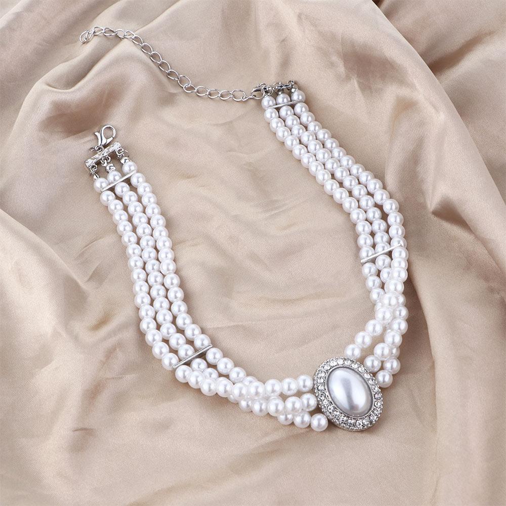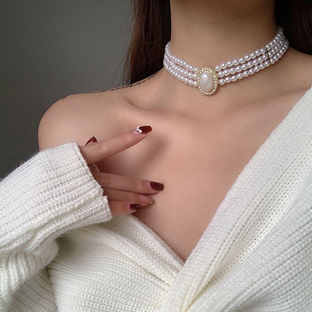 Жемчужное колье в стиле Хепберн, трехслойное, аксессуары для украшений, стразы, корейский стиль, чокер, женское ожерелье