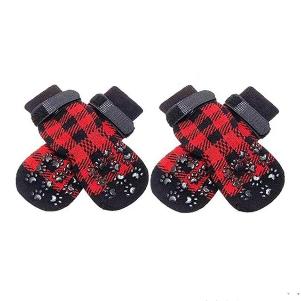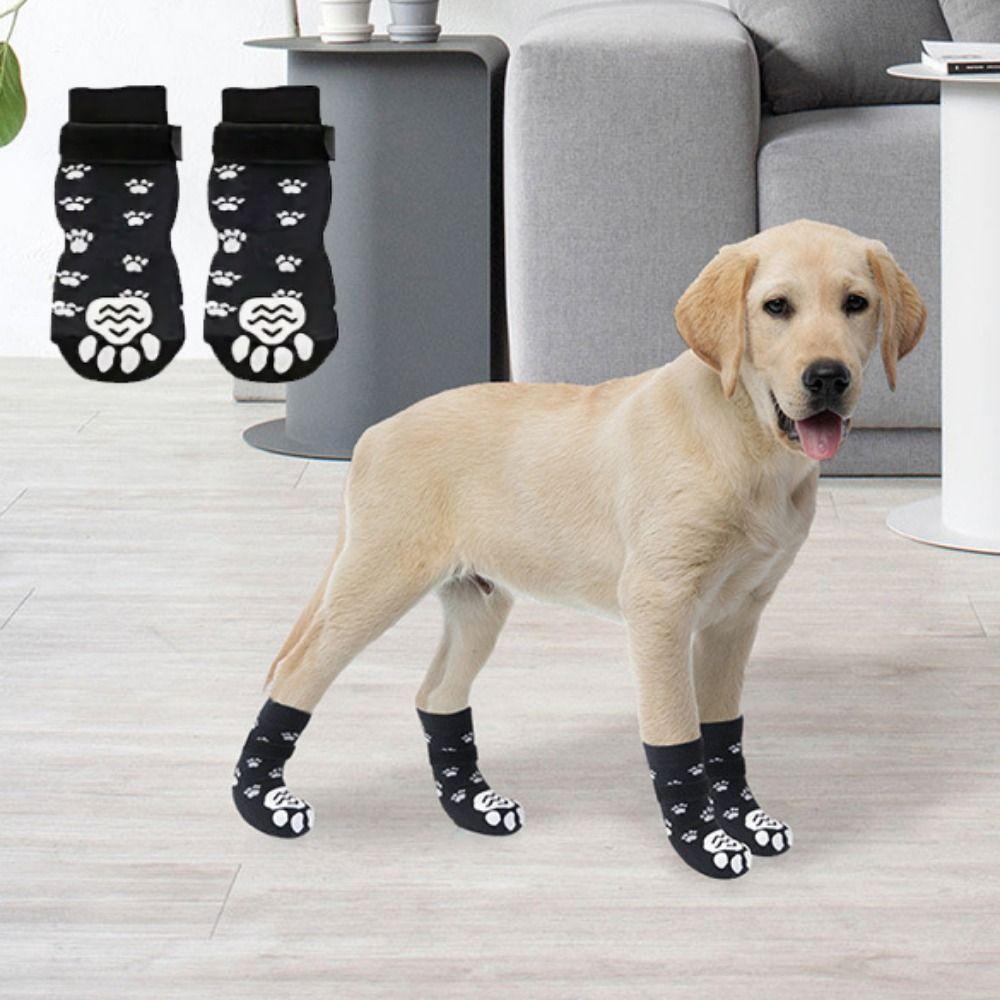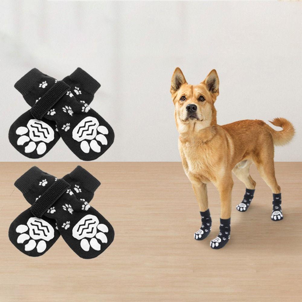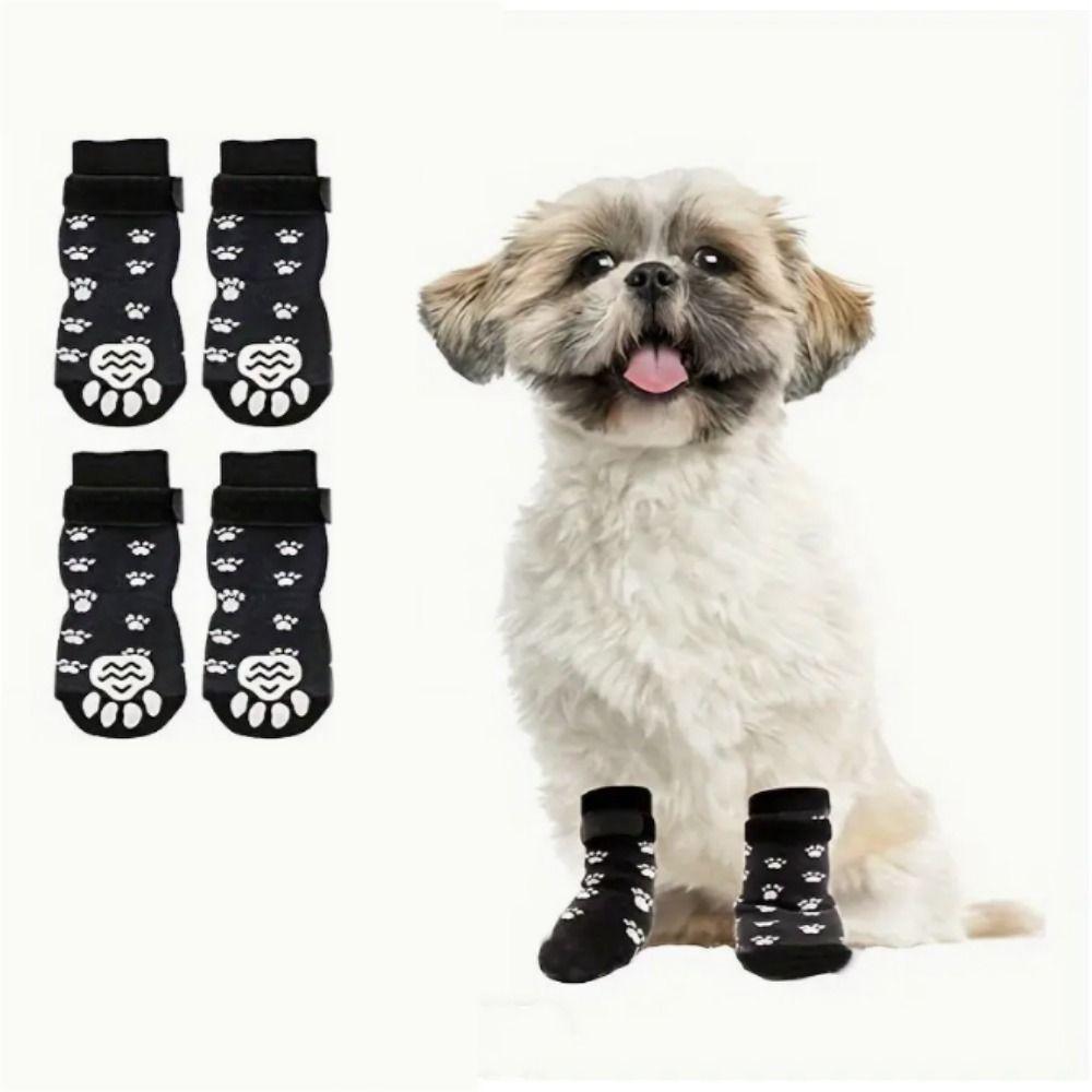 4pcs/set Cotton Waterproof Dog Non-slip Socks Adjustable Pet Socks Foot Cover Outdoor