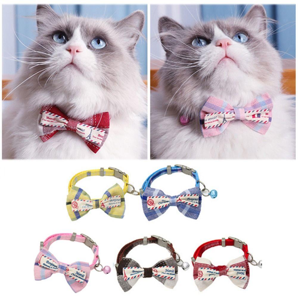 Регулируемый ошейник для кошек в клетку, британский стиль, галстук-бабочка для кошек, ожерелье для кошек, котят