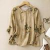 Рубашка из хлопка и льна с принтом в стиле ретро, женская рубашка с круглым вырезом контрастного цвета, тонкая летняя рубашка с короткими рукавами
