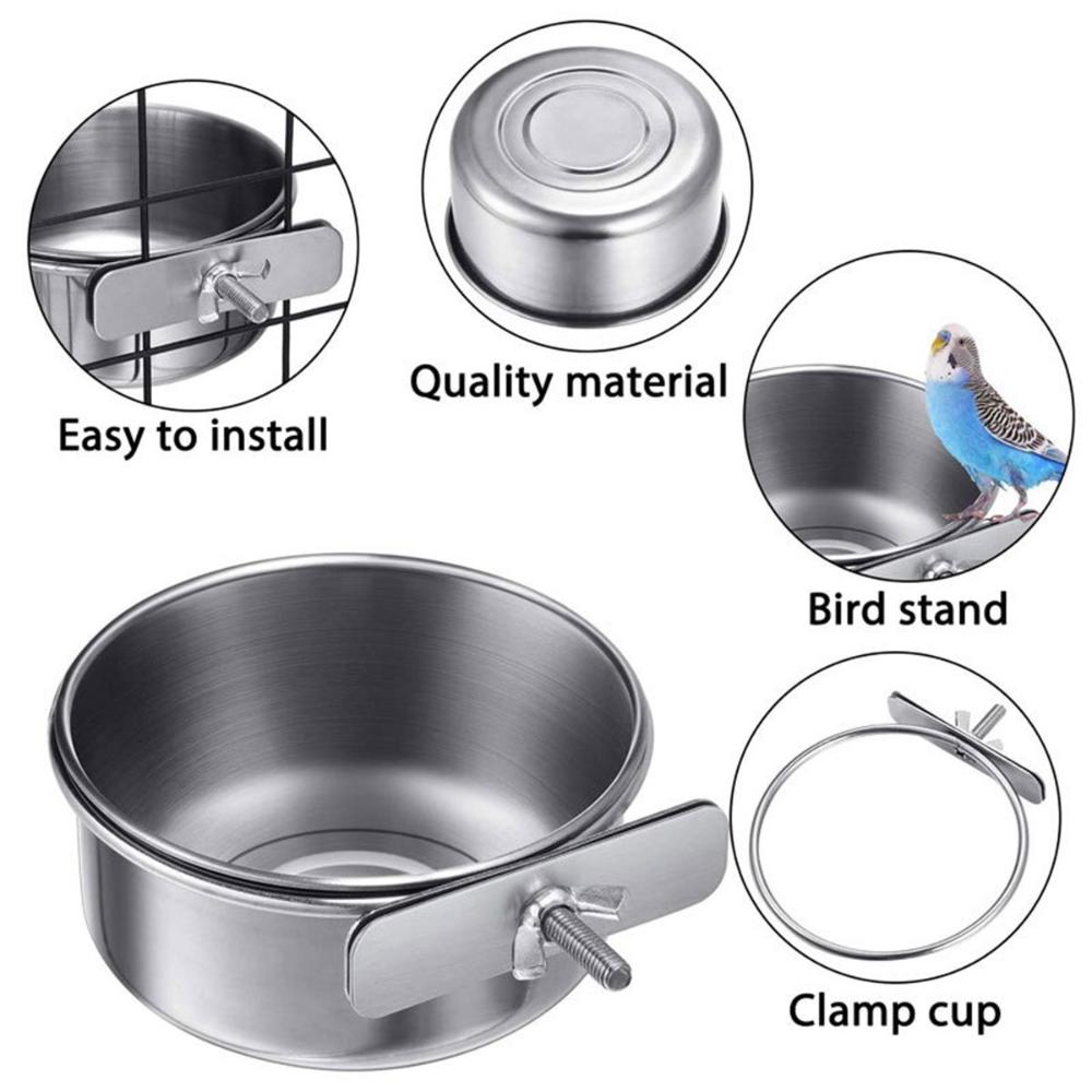 Clamp-on Hamster Hanging Stainless Steel Water Drinker Cage Cup Parrot Feeding Bowl Bird Feeder