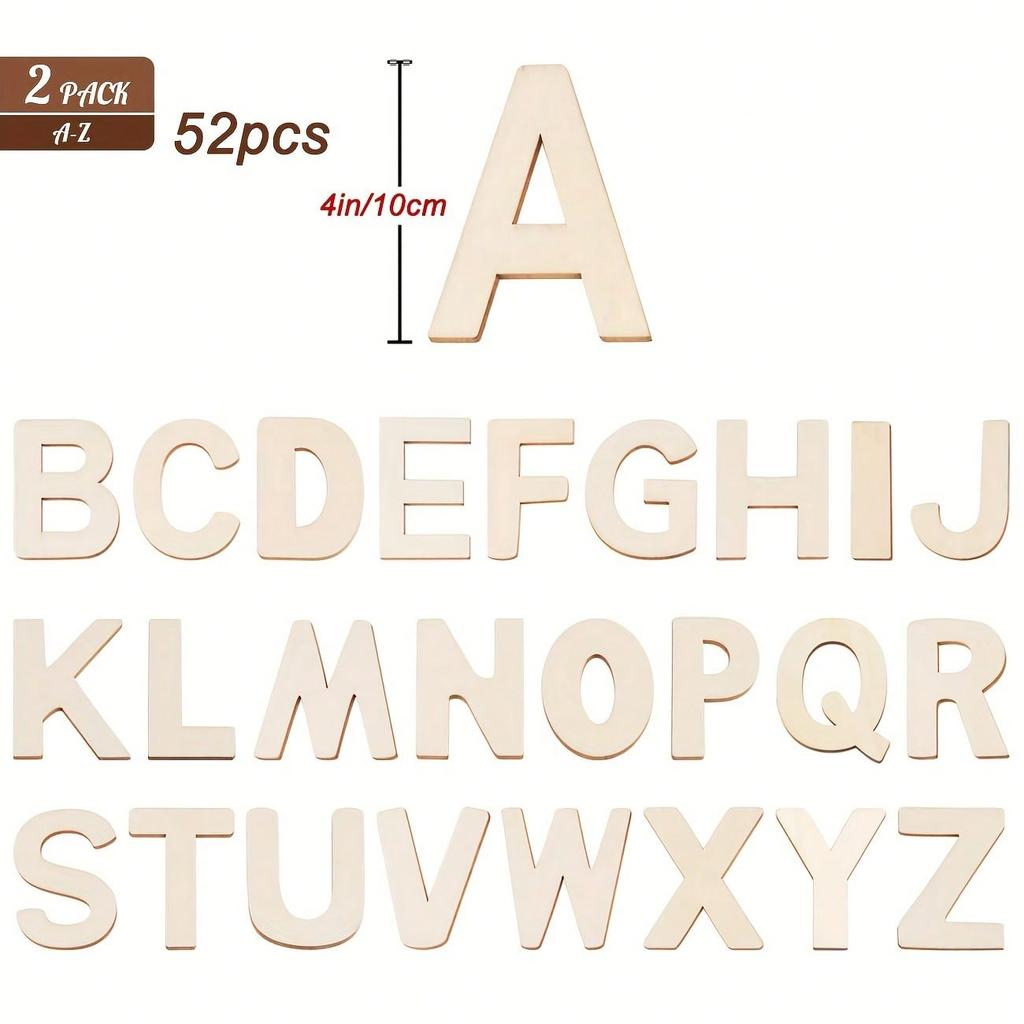 52 шт. 4" Деревянные буквы - Деревянные буквы алфавита для поделок, Деревянное украшение для вывески, Деревянные буквы для росписи