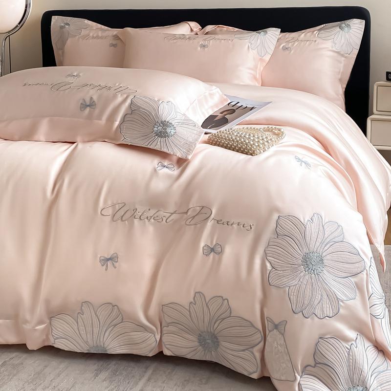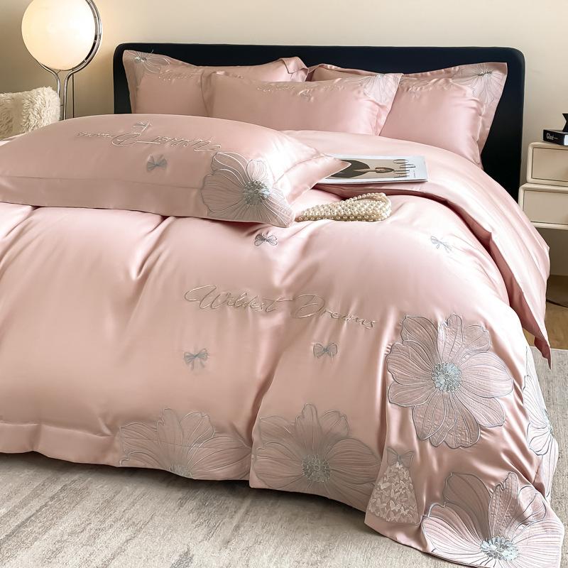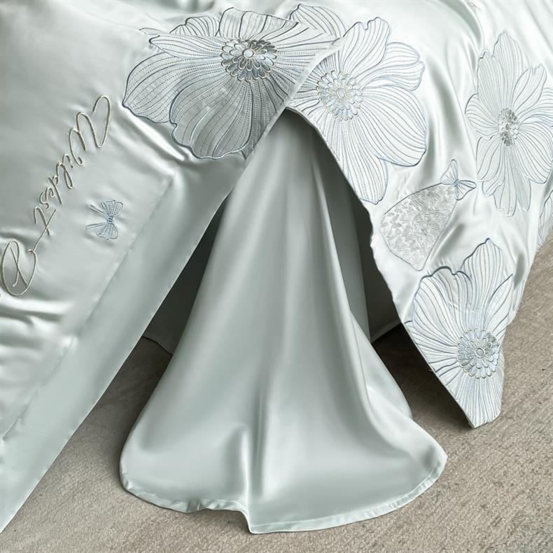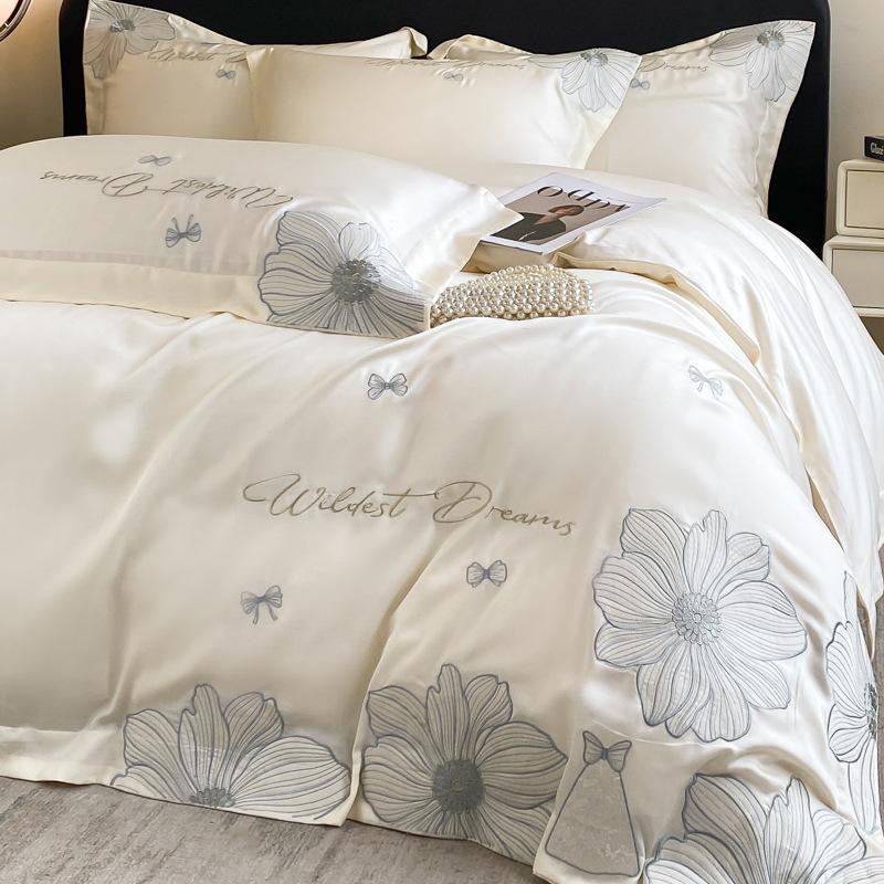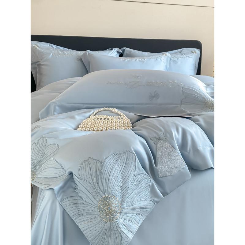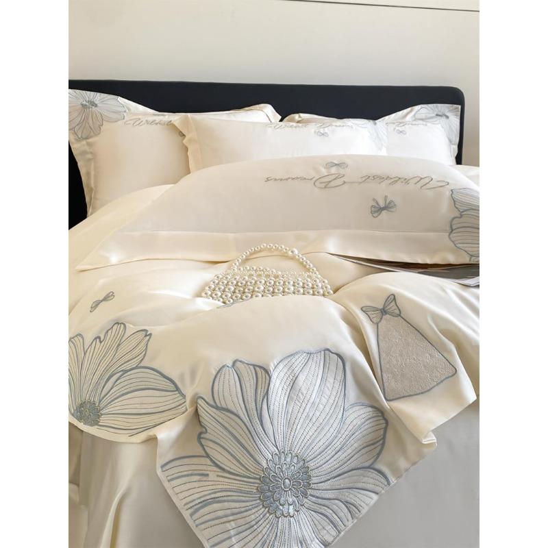 Летний комплект из четырех предметов из двухстороннего ледяного шелка 160, вышитое одеяло, идеальный комплект, шелковисто-гладкий, можно спать голым