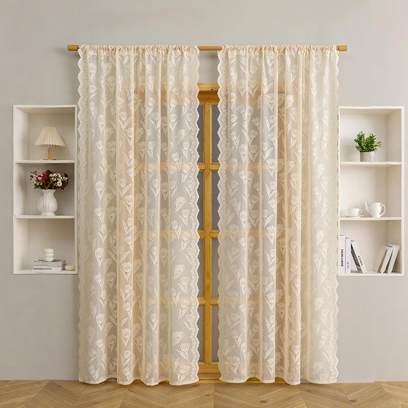 1 шт. Элегантная цветочная кружевная занавеска - полупрозрачная белая сетка, светофильтрация и воздушный дизайн для патио, детской комнаты, декора гостиной