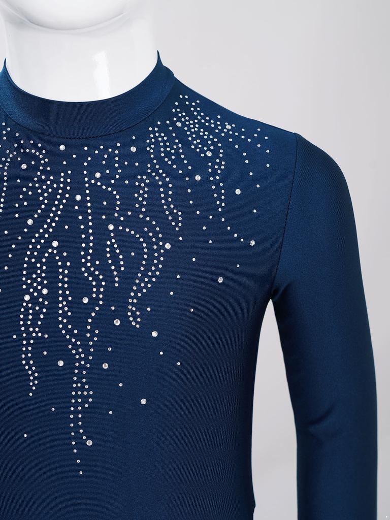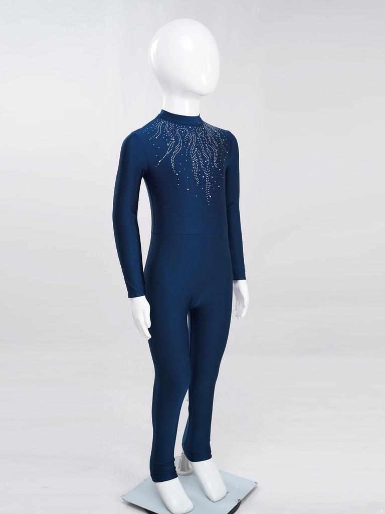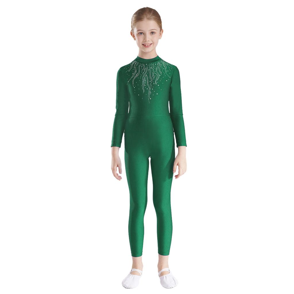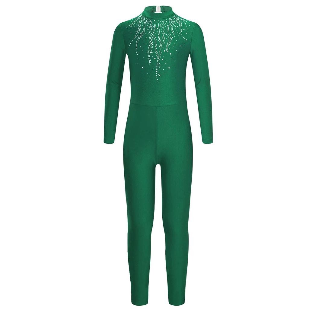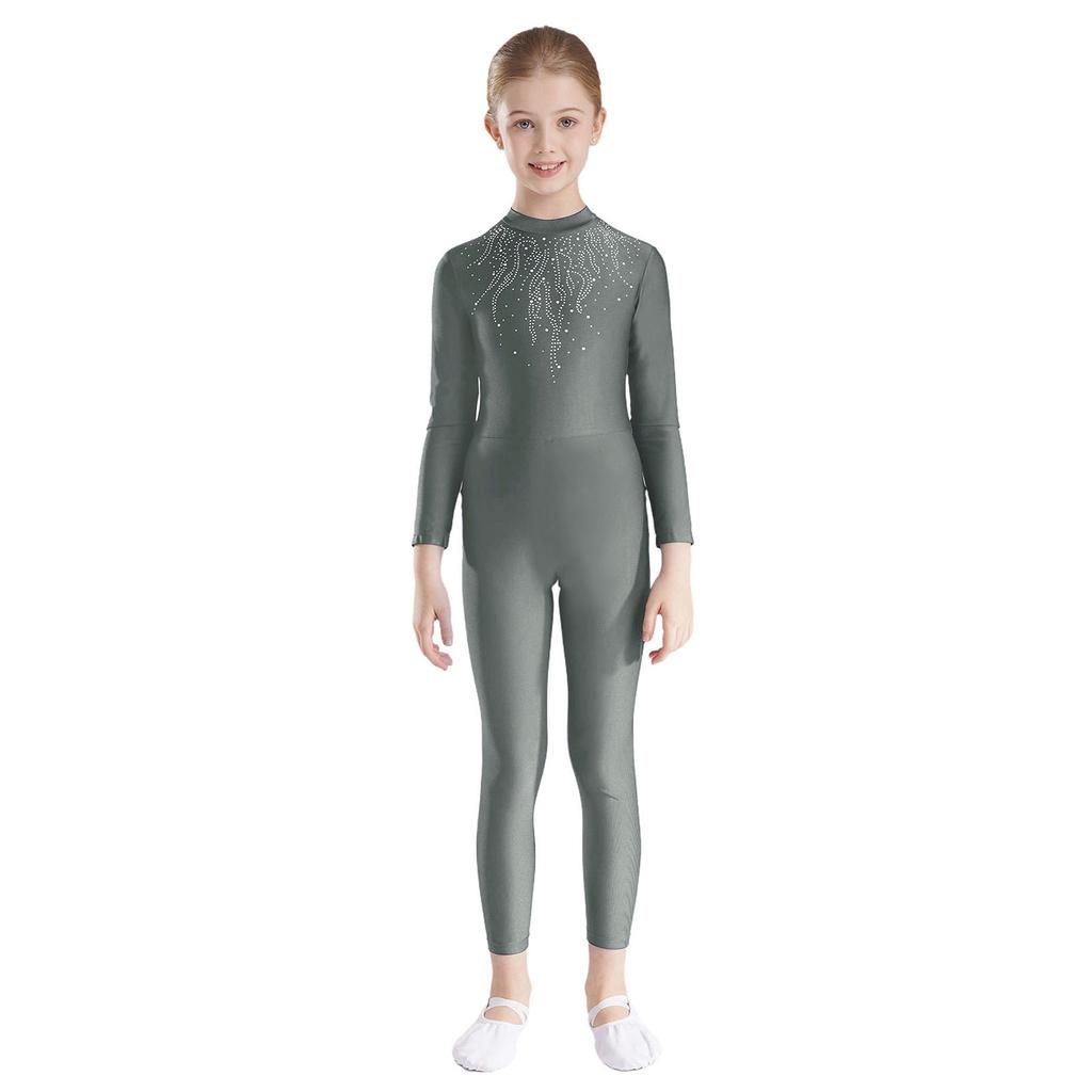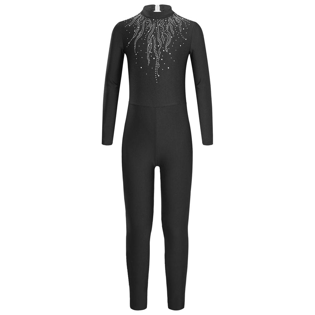 Детский танцевальный комбинезон для девочек, блестящий, со стразами, с длинным рукавом, с вырезом-замочной скважиной сзади, гимнастический купальник для фигурного катания