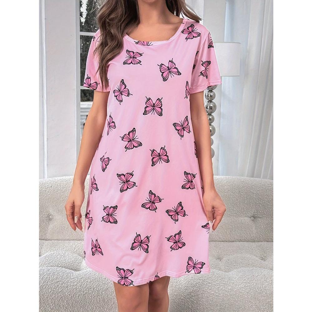 Повседневная пижама с принтом бабочек, футболка с коротким рукавом и круглым вырезом, летняя женская пижама, студенческая юбка