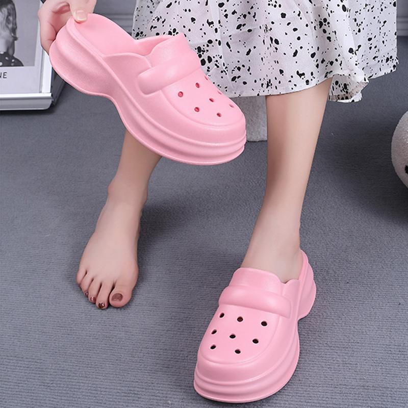 Белые сабо из ЭВА на платформе, женские тапочки с толстой подошвой и закрытым носком, летние пляжные сандалии, нескользящие садовые тапочки для женщин
