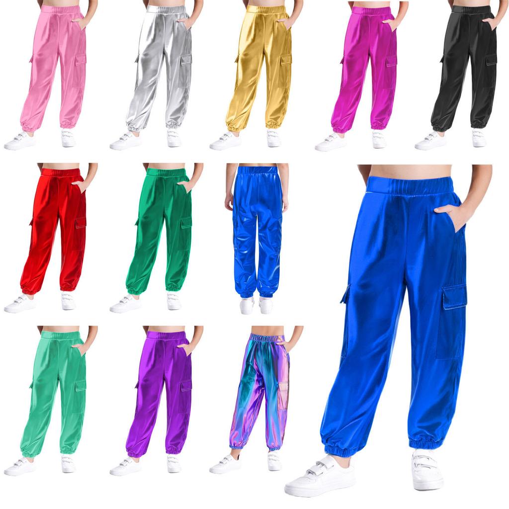 Унисекс детские блестящие брюки для выступлений с металлической резинкой на талии и карманами одежда для танцев на вечеринку — купить товар онлайн с бесплатной доставкой до всему миру!