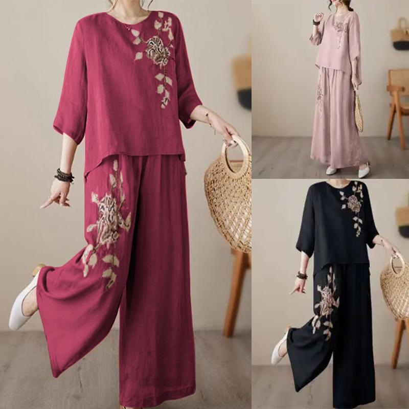 Комплект вышивки льняная летняя рубашка пуловер с короткими рукавами легкие брюки из искусственного хлопка и льна с широкими штанинами комплект из двух предметов — купить товар онлайн с бесплатной доставкой по всему миру!