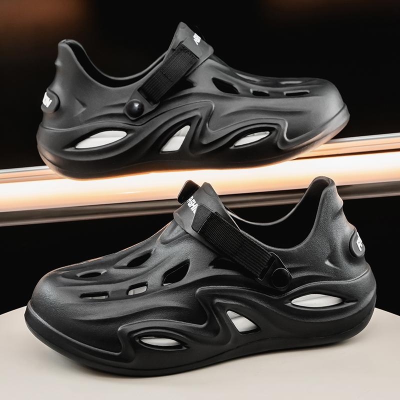 Новые мужские водонепроницаемые туфли EVA, летние мужские однотонные полые тапочки, мужские мягкие сандалии без застежек, мужские нескользящие шлепанцы для активного отдыха