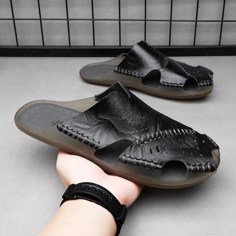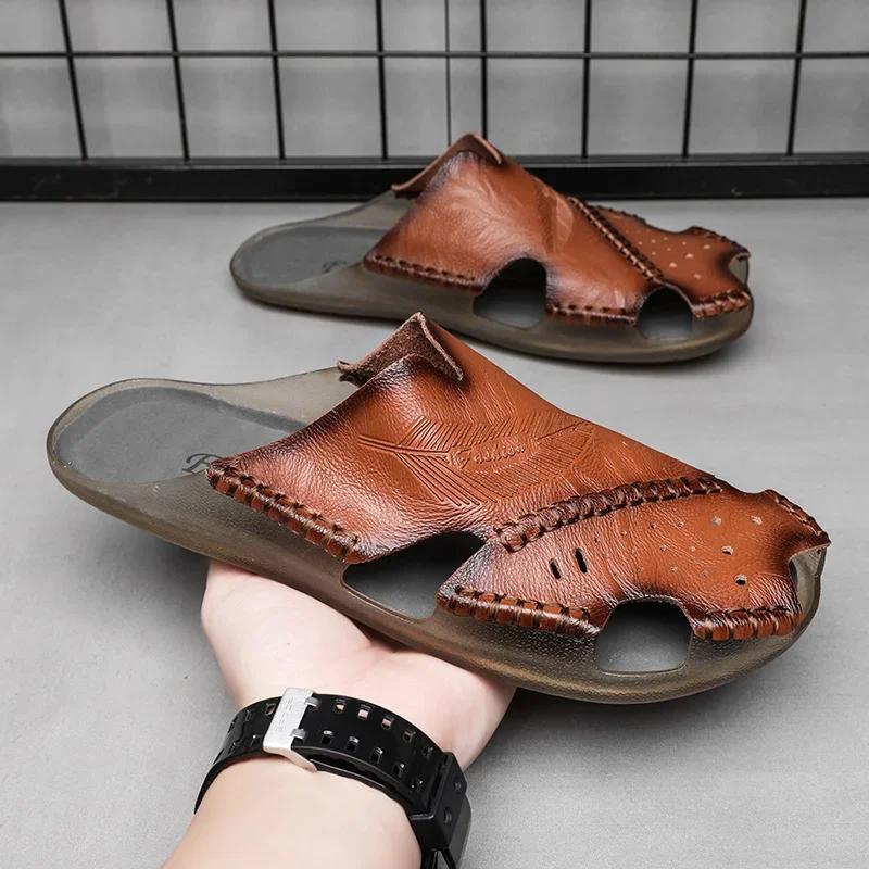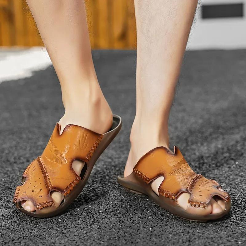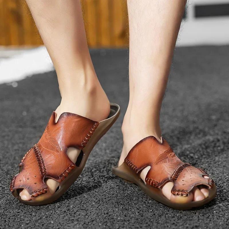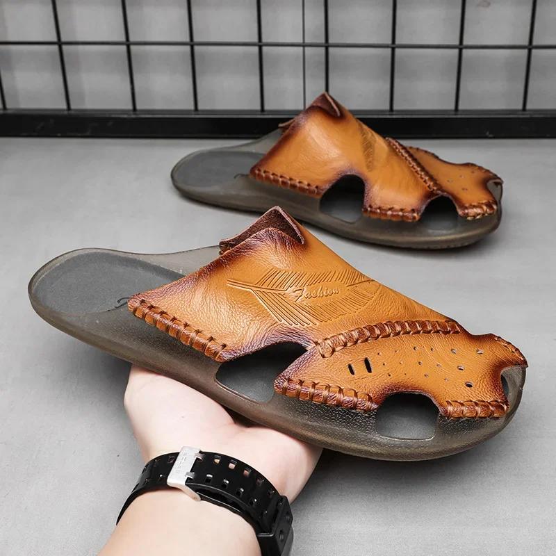 Тапочки шиацу для мужчин Мужская летняя обувь 2024 года Сандалии на плоской подошве Мужские сандалии Повседневные кроссовки из натуральной кожи Мужские тапочки