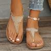 Сандалии в стиле бохо на плоской подошве с эластичным ремешком и бусинами, женские римские сандалии 2025 года, удобные нескользящие пляжные туфли