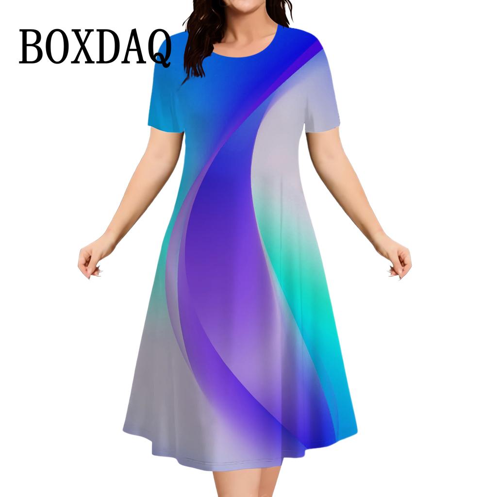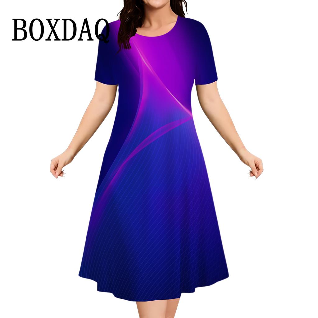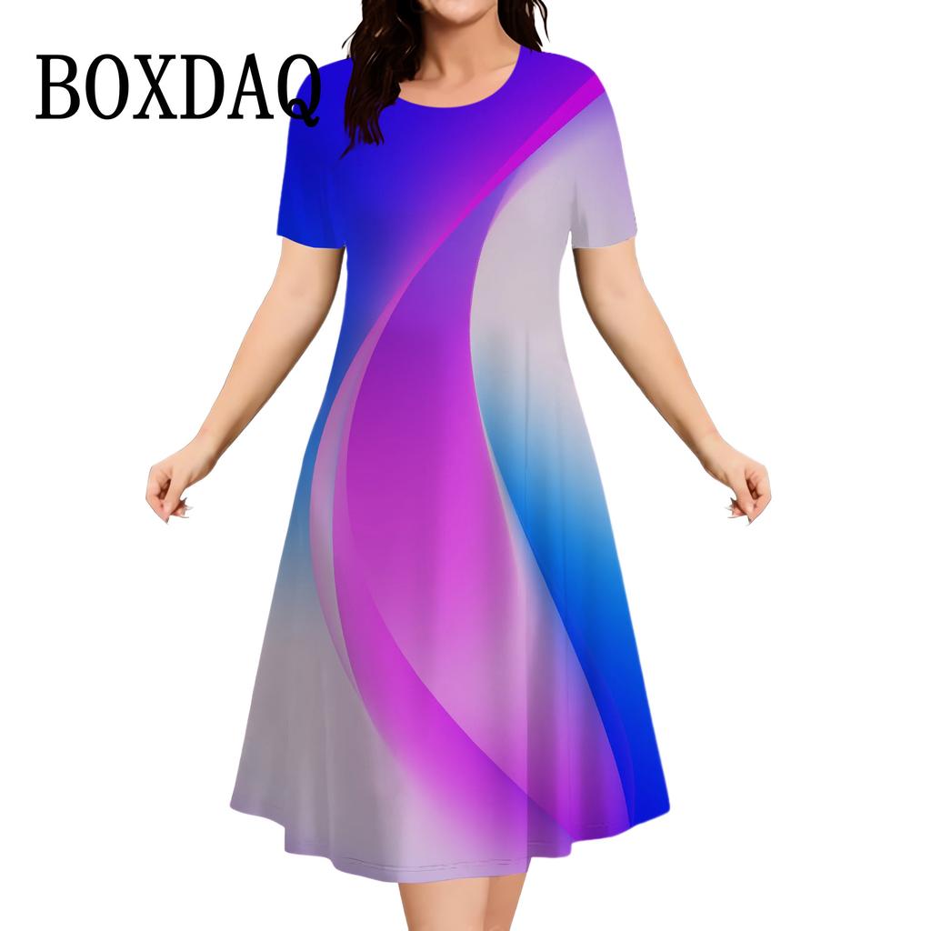 Повседневные платья женские с коротким рукавом Сарафаны 3D-печать Модные платья больших размеров Мини-платья Халаты