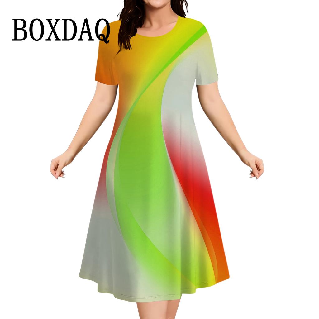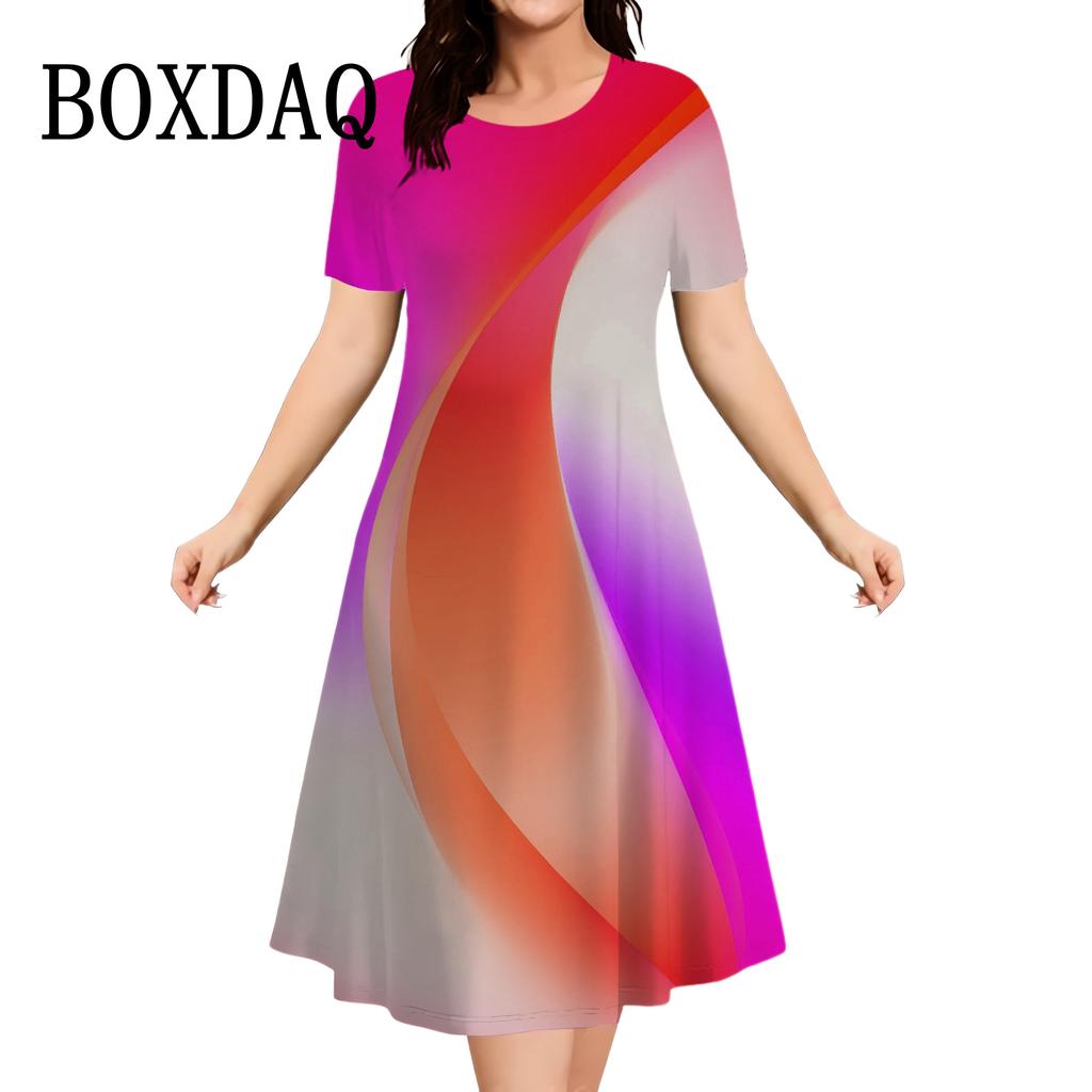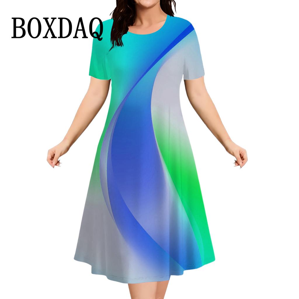 Повседневные платья женские с коротким рукавом Сарафаны 3D-печать Модные платья больших размеров Мини-платья Халаты