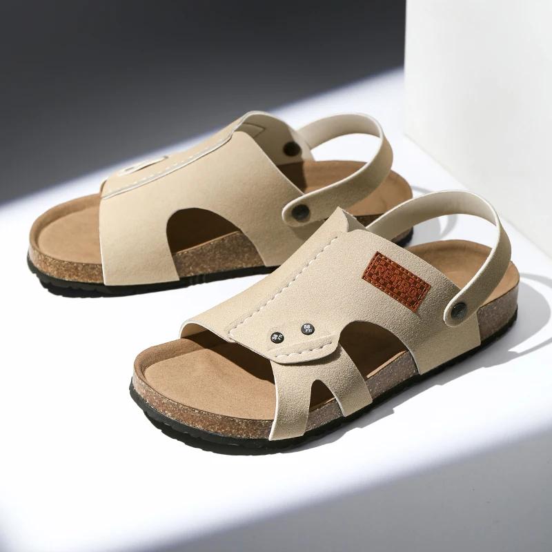 Мужские удобные повседневные сандалии для спальни, летние шлепанцы на плоской подошве, пробковые тапочки для мужчин, домашние шлепанцы с поддержкой свода стопы, zapatos
