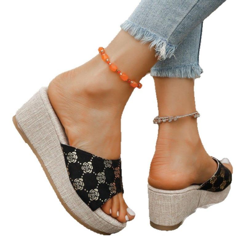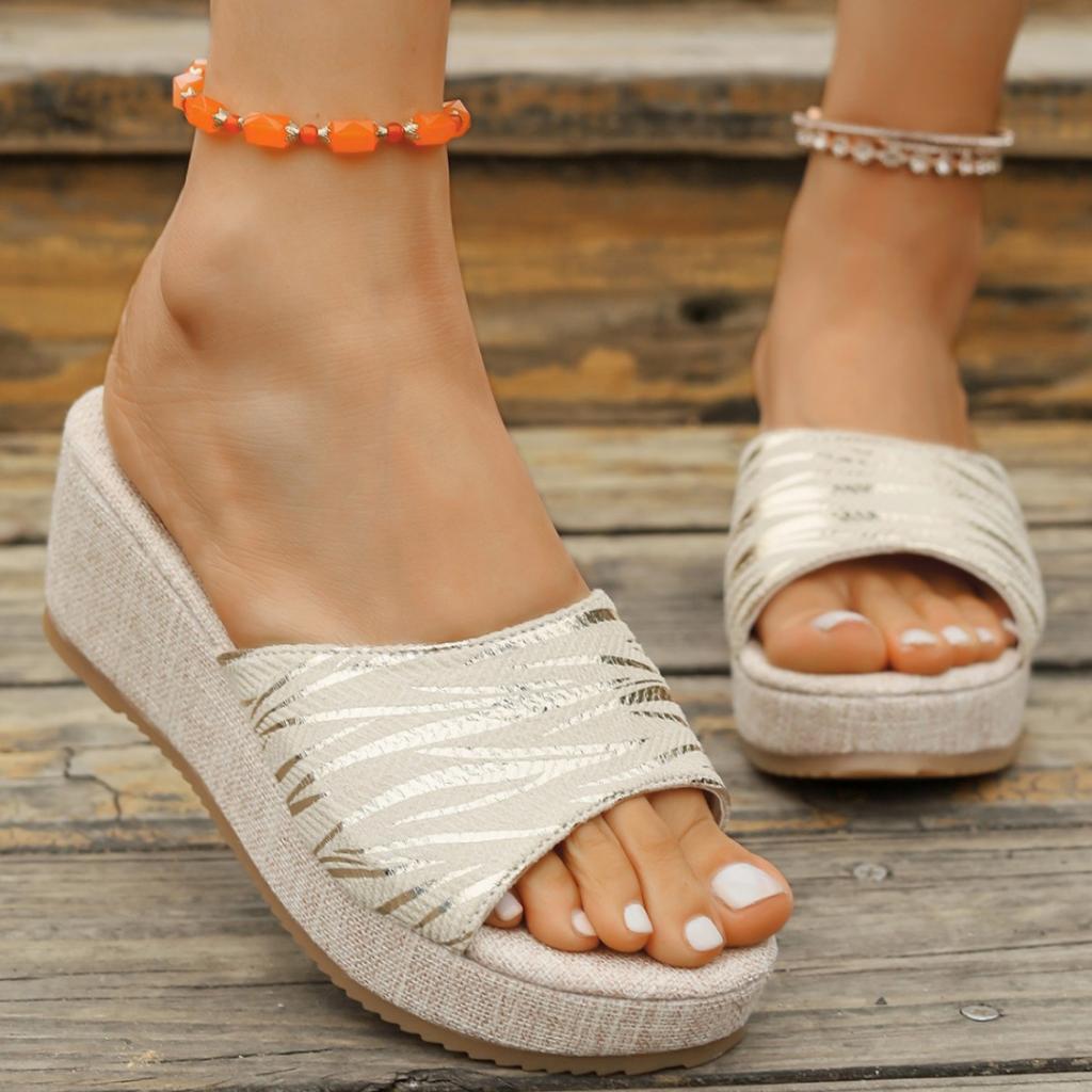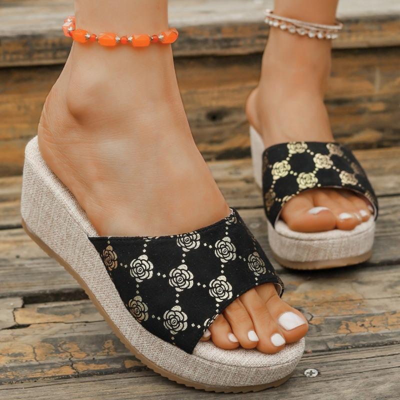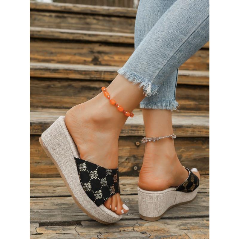 Босоножки-тапочки на покатом каблуке, женские однорядные тапочки с толстой подошвой