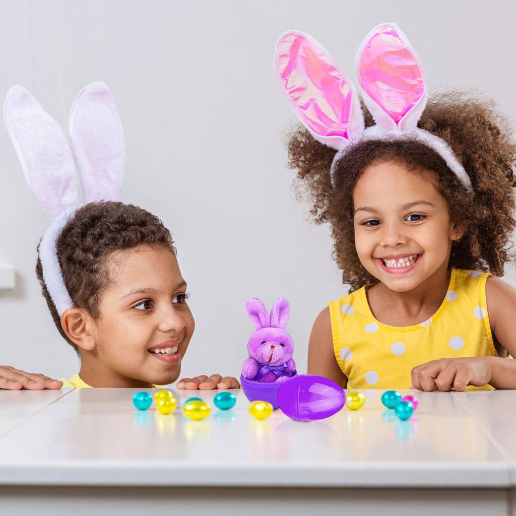 12 шт. наполненных пасхальных яиц, корзинок, наполнителей с куклами-кроликами, для мальчиков и девочек, пасхальные подарки, вечеринка, кукол-наполнителей