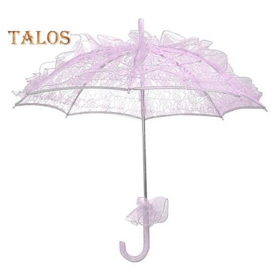 Подчеркните свою элегантность с этим кружевным зонтиком.. Этот свадебный зонт, изготовленный из кружева и металла, прочный и легкий, идеально подходит для повседневного использования или особых случаев.. J-образная ручка обеспечивает удобство, позволяя легко подвешивать изделие, не занимая много места..