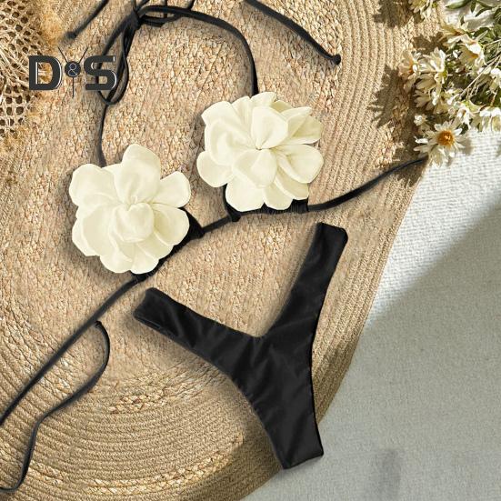 Элегантная 3D-цветочная деталь: Дополните свой пляжный стиль топом-халтер на шнуровке с замысловатыми цветочными украшениями 3D на груди, которые привнесут в ваш образ очарование и изысканность.