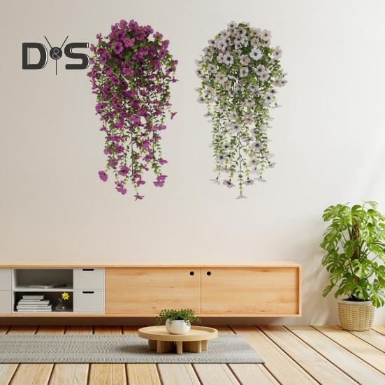 Всепогодные подвесные цветы для улицы: Испытайте идеальное сочетание долговечности и эстетики с нашей прецизионной технологией подвесных цветов.. Эти искусственные цветы для улицы сочетают в себе прочную конструкцию, пластиковые листья, устойчивые к ультрафиолетовому излучению, и армированные проволочные стебли, которым можно легко придать форму, подходящую для подвесных корзин или цветочных горшков, создавая потрясающий вид.
