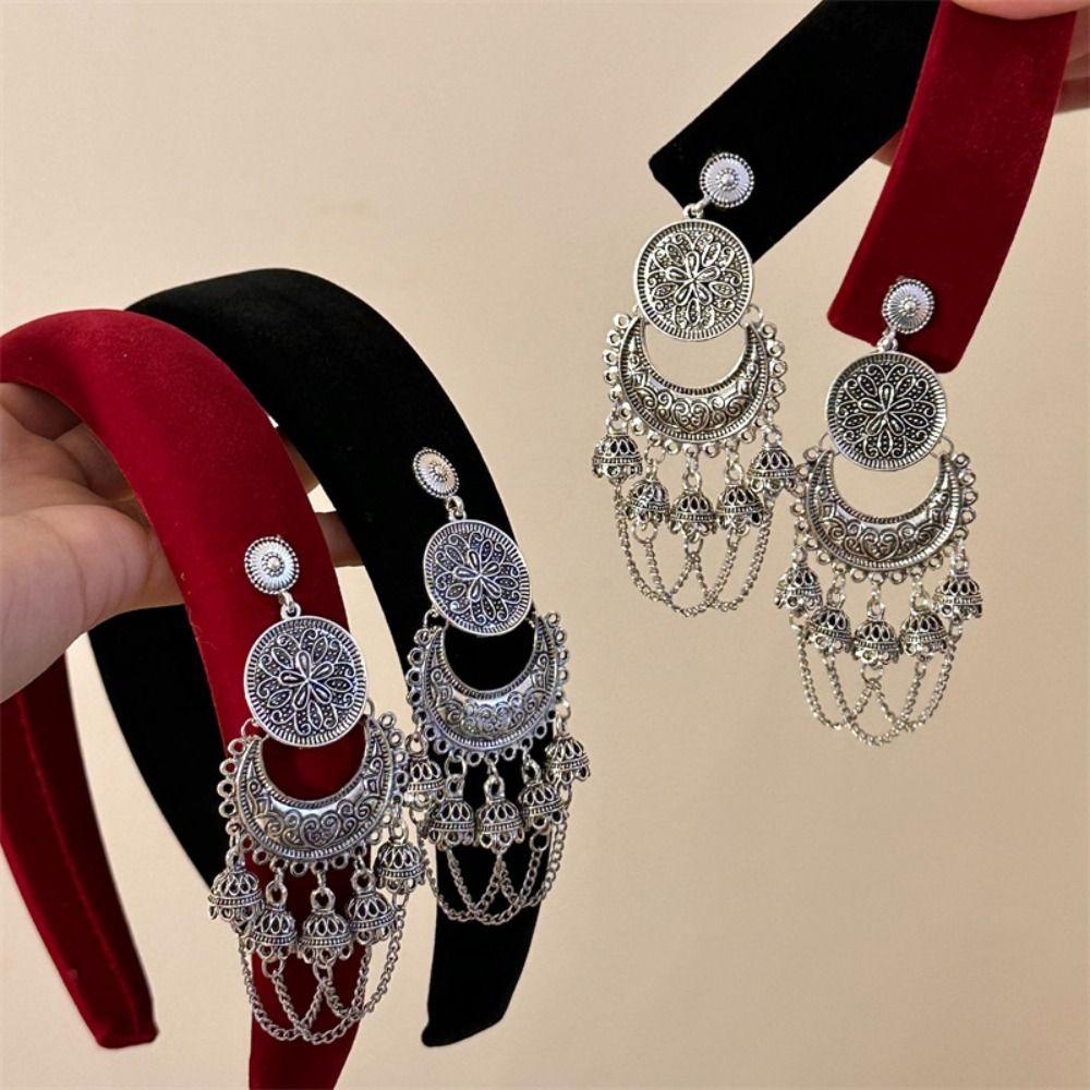Ретро-повязка на голову с колокольчиком и кисточками, бархатная китайская боковая заколка, креативный этнический обруч для волос для женщин — купить товар онлайн с бесплатной доставкой до всему миру!